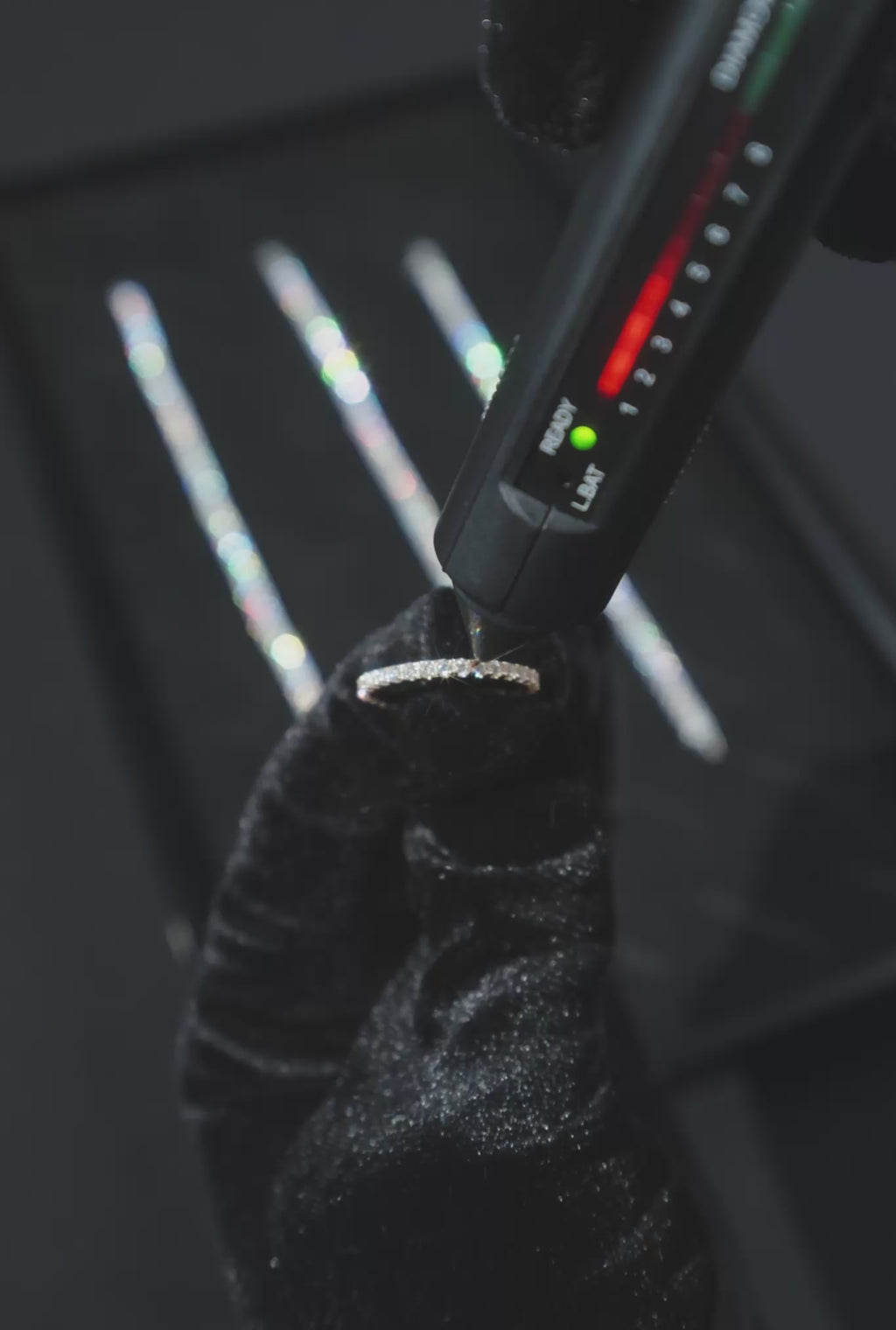 Our moissanite tennis ring has VVS clarity meaning the diamonds are completely colourless on the eye. They will test positive as diamonds on most handheld diamond testers. The perfect alternative to large diamonds that cost thousands.