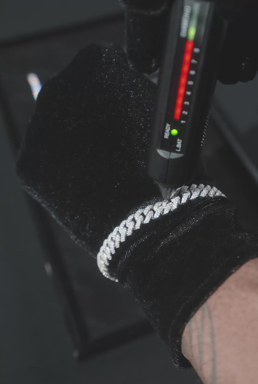 Our Moissanite Cuban Bracelet has a round brilliant cut and VVS clarity meaning the diamonds are completely colourless on the eye. They will test positive as diamonds on most handheld diamond testers. The perfect alternative to large diamonds that cost thousands.