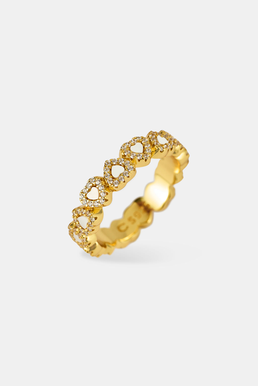 Want to step up your ring game? We custom designed this Mother Of Pearl Heart Band Ring to shine and reflect light from all angles. This unique ring will set you apart from the rest.
