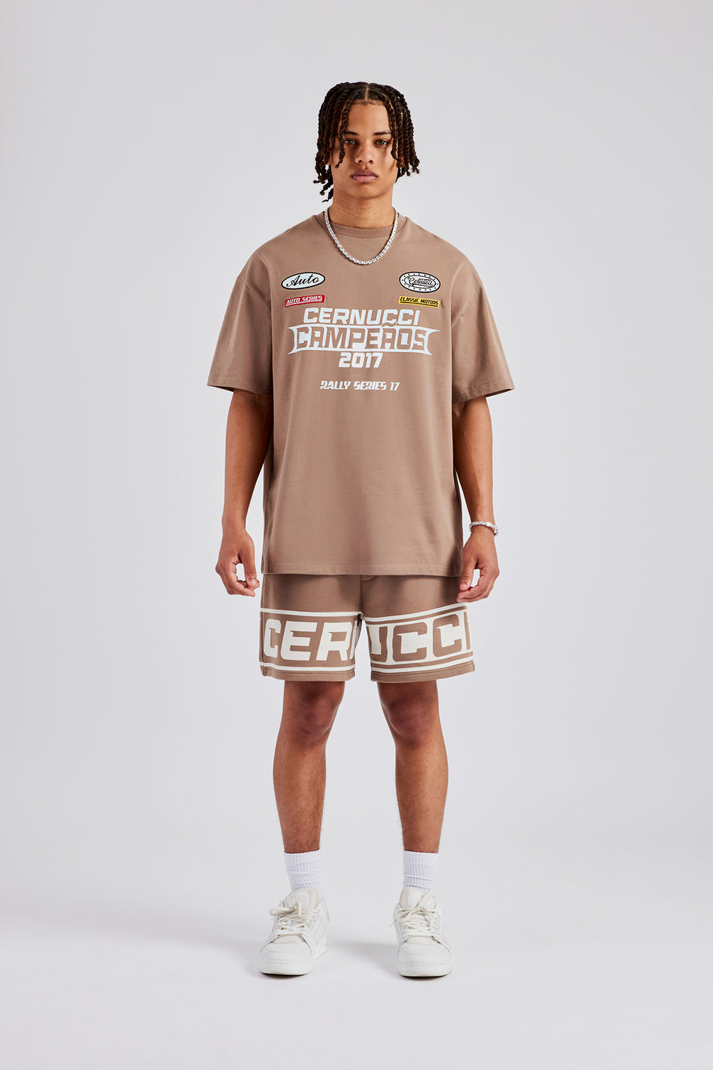 Moto Champions t-shirt in washed brown. Oversized fit in a medium weight, soft touch cotton.