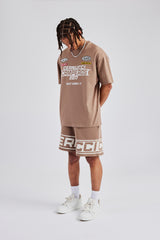 Moto Champions t-shirt in washed brown. Oversized fit in a medium weight, soft touch cotton.
