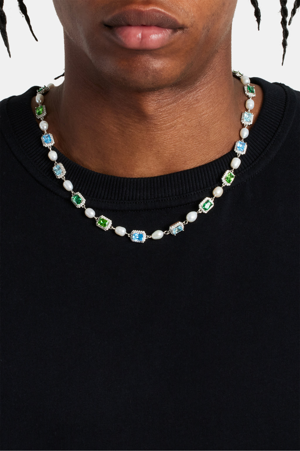 Our Multi Colour Blue Gemstone Freshwater Pearl Necklace go hard. Pair with any pearl bracelets, to be worn for any occasion.