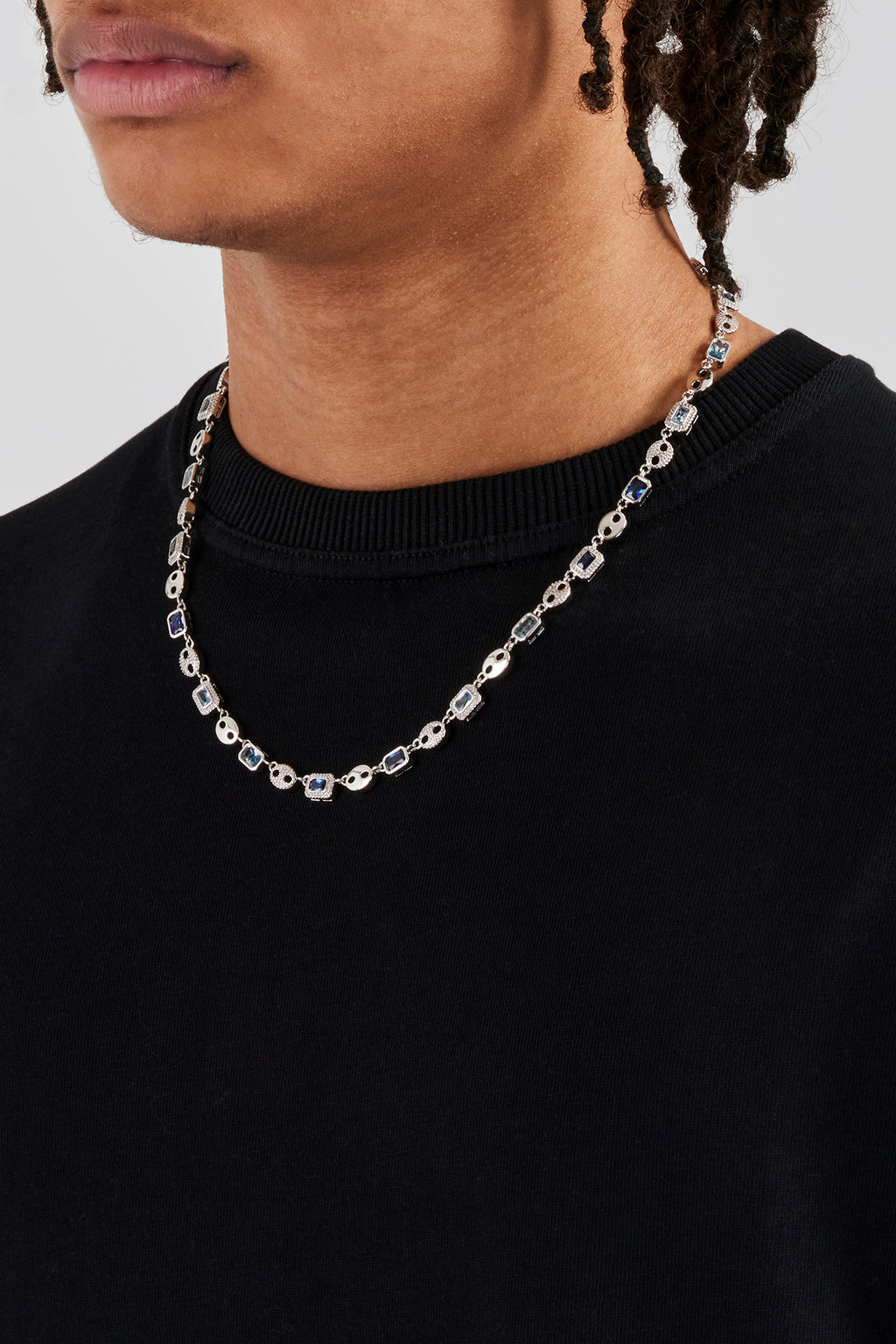 The Multi Gemstone Coffee Bean Link Chain brings the heat with chunky, standout links iced in a mix of vibrant gemstones for that all-eyes-on-you energy. It’s giving luxury, color, and serious statement vibes—not your average chain, and that’s the point.