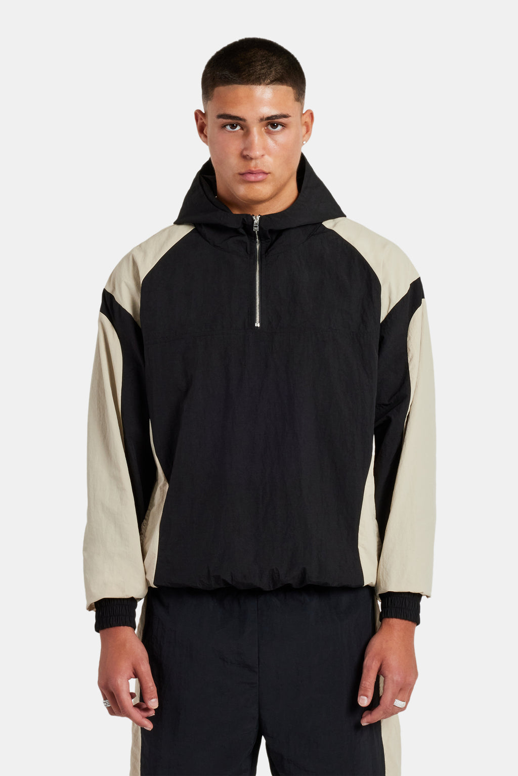Nylon colour block panelled hooded track jacket in lightweight nylon.