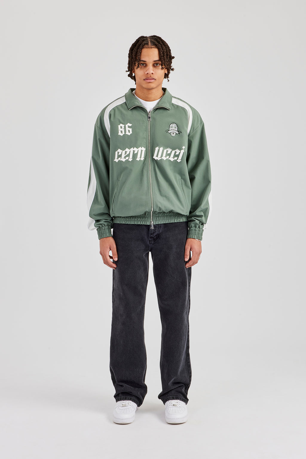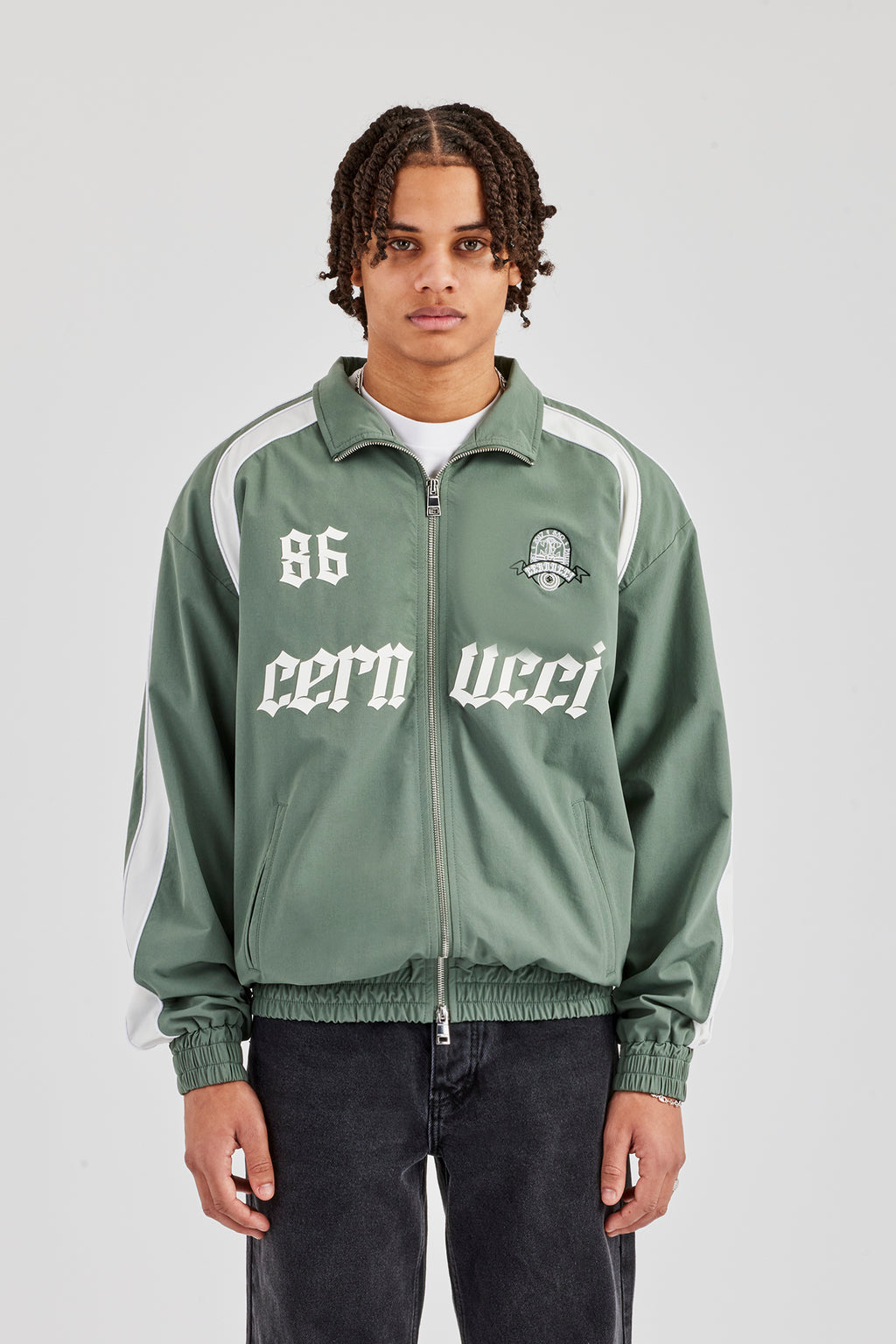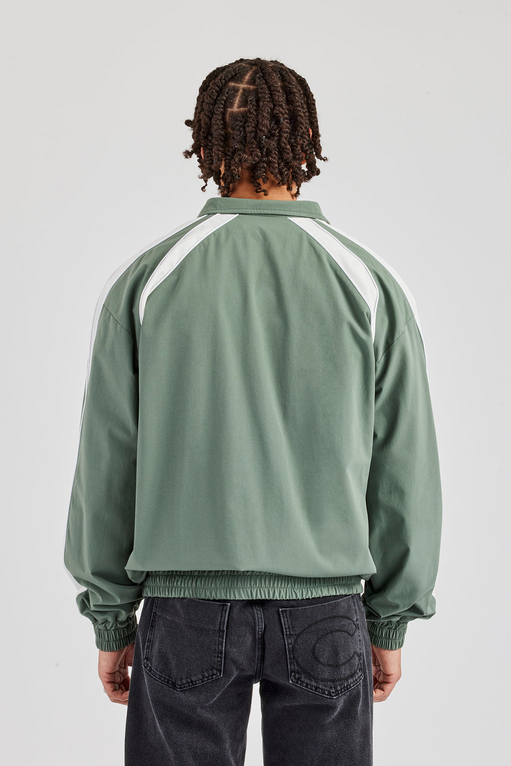 Funnel neck track jacket with contrast panel detailing in a lightweight nylon.