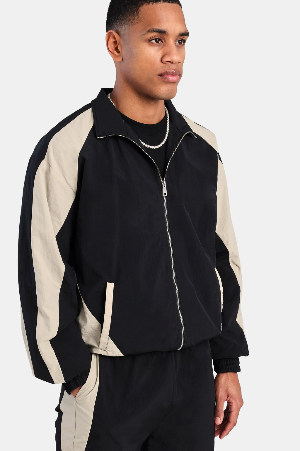 Colour block panelled track jacket in lightweight nylon.
