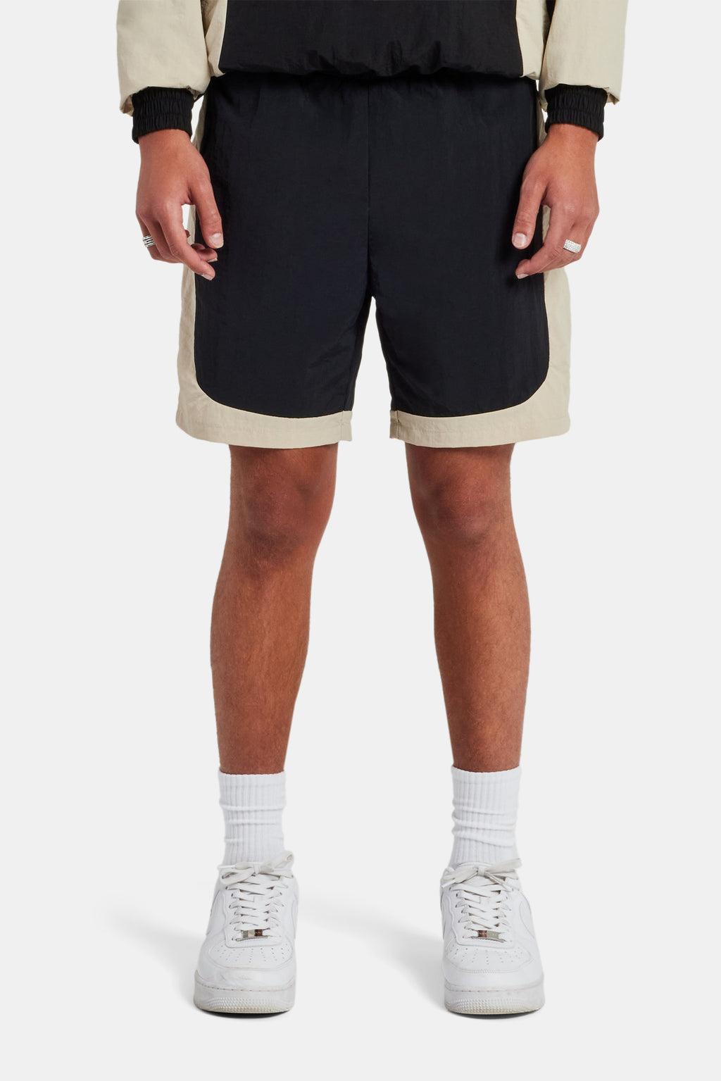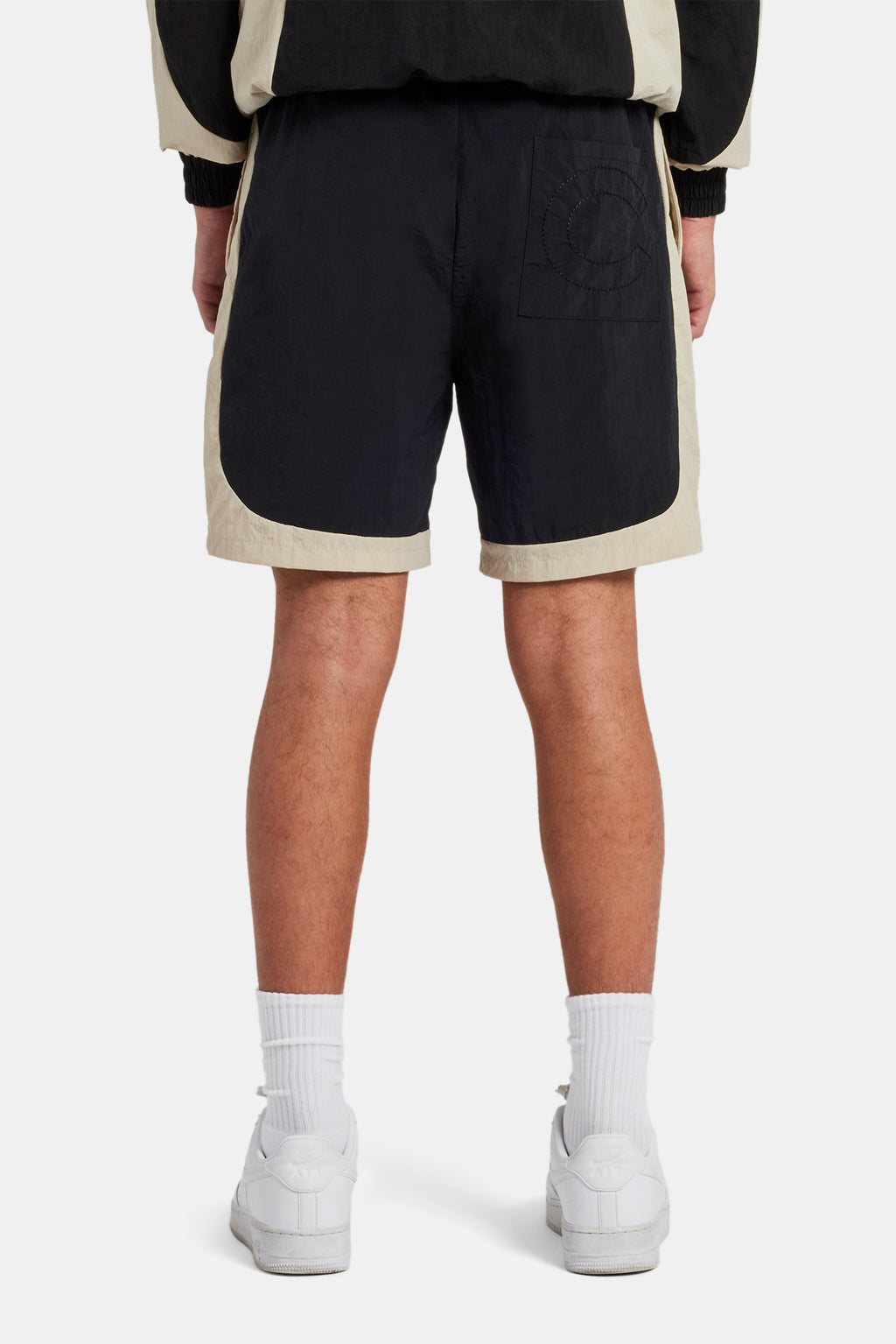 Nylon short with contrast side panel. Style with matching 1/4 zip jacket to complete the look.