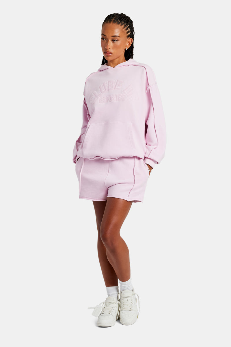Pink overlock detail hoodie in a Premium Heavyweight soft touch jersey. Pair with the matching short for the full look.