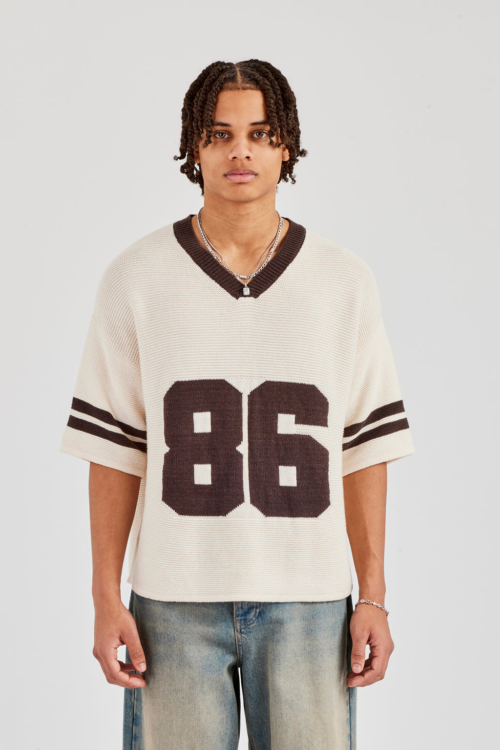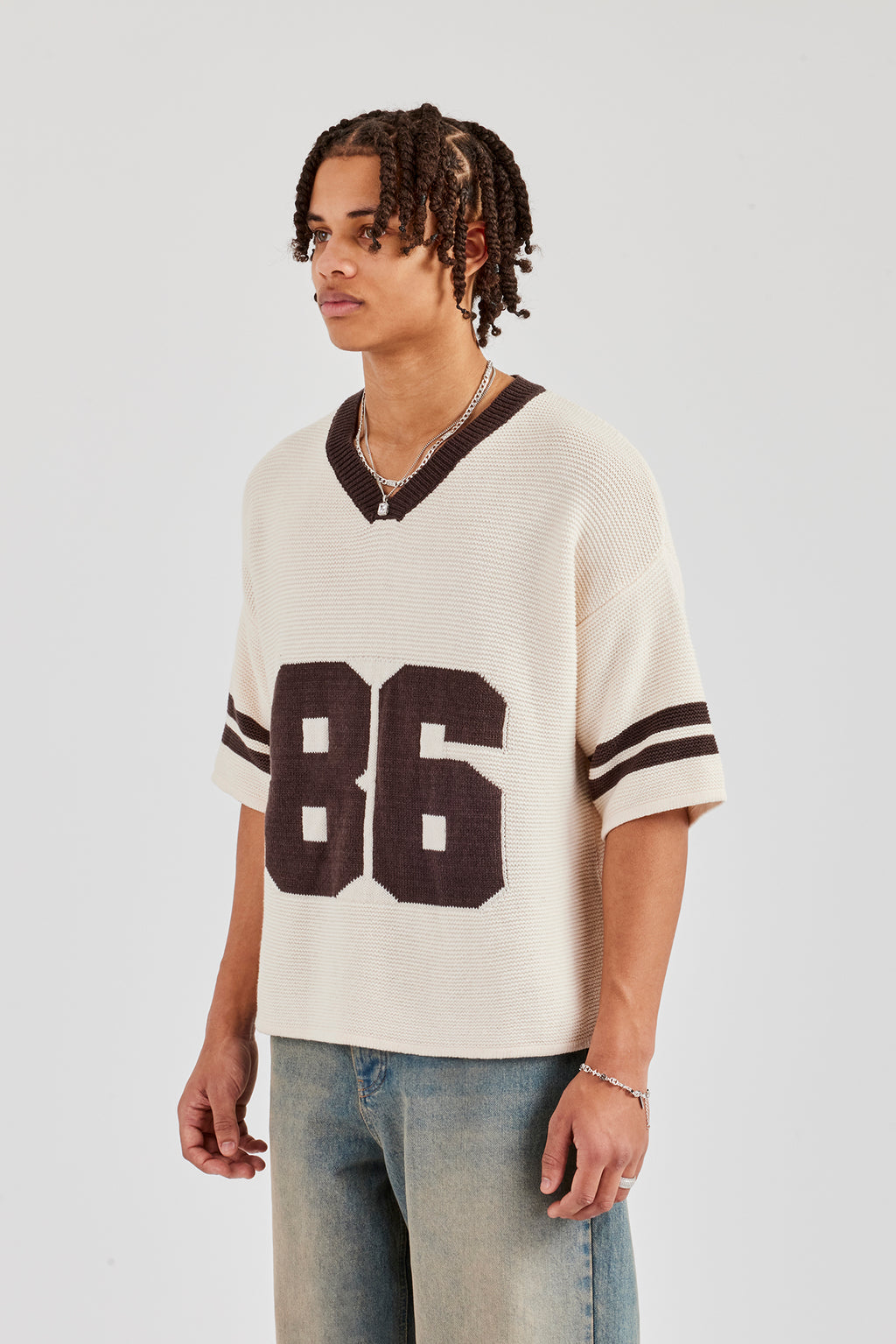Off white oversized knitted jersey with V neck in a boxy fit.