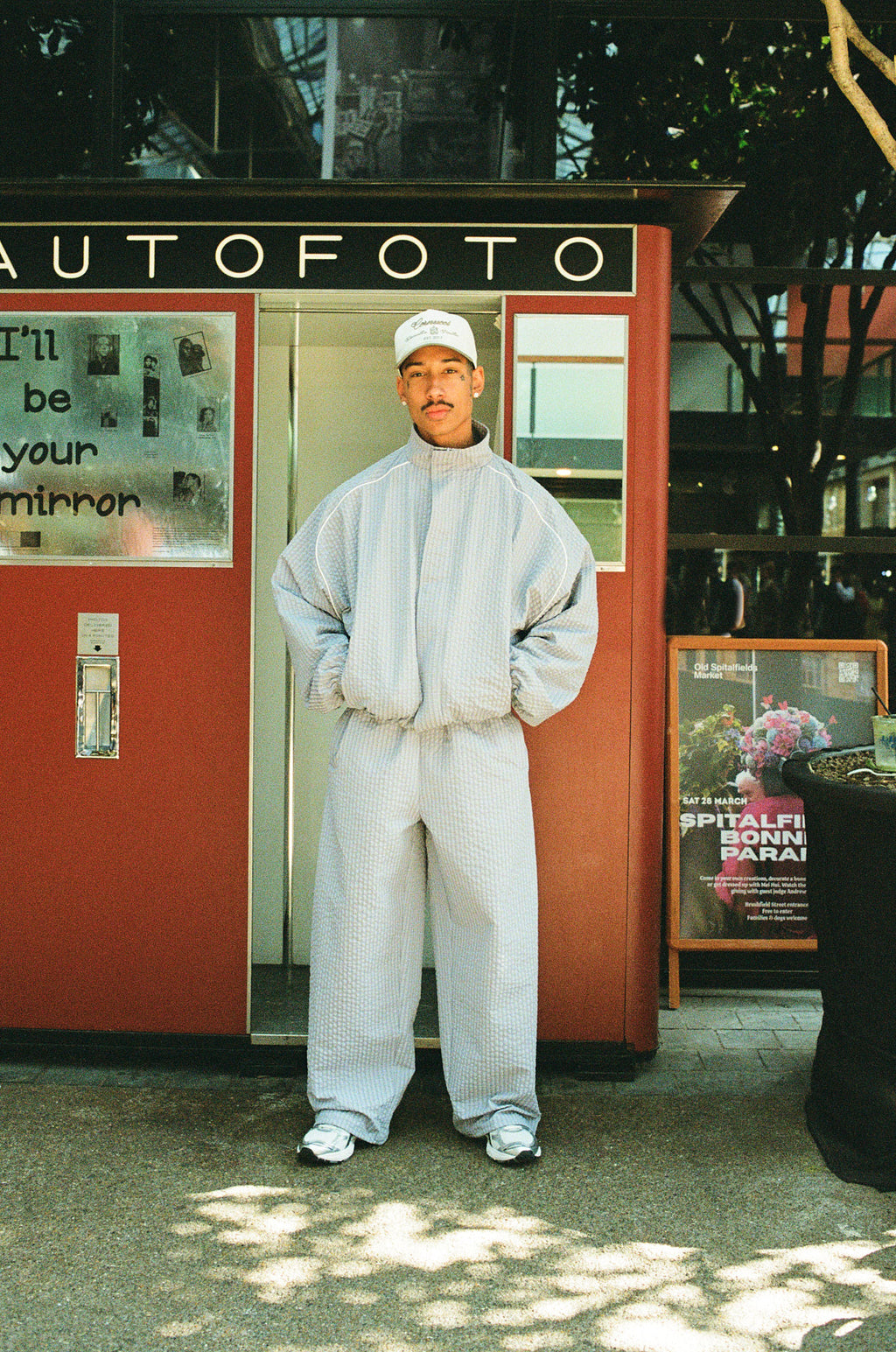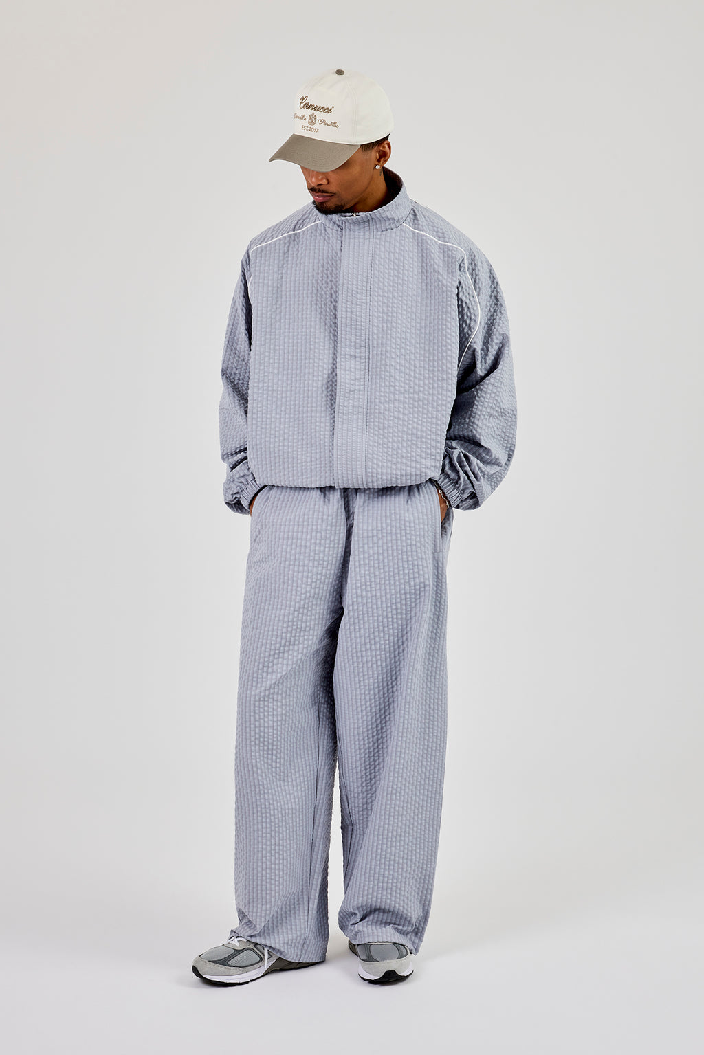 Oversized Nylon Check Funnel Neck Windbreaker & Trouser - Light Grey