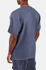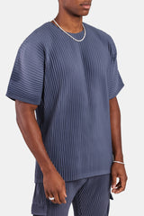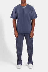 Our dusty blue pleated t-shirt, everyones wardrobe essential, versatile for any occasion. Made from premium, mid weight, breathable fabric with pleated effect. Complete the look with our pleated cargo trouser.