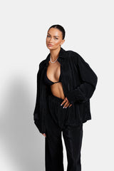 Oversized Stripe Tie Sleeve Shirt - Pink