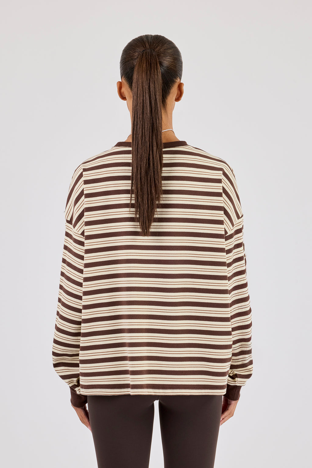 Oversized stripe long sleeve top with contrast rib neck & cuff.