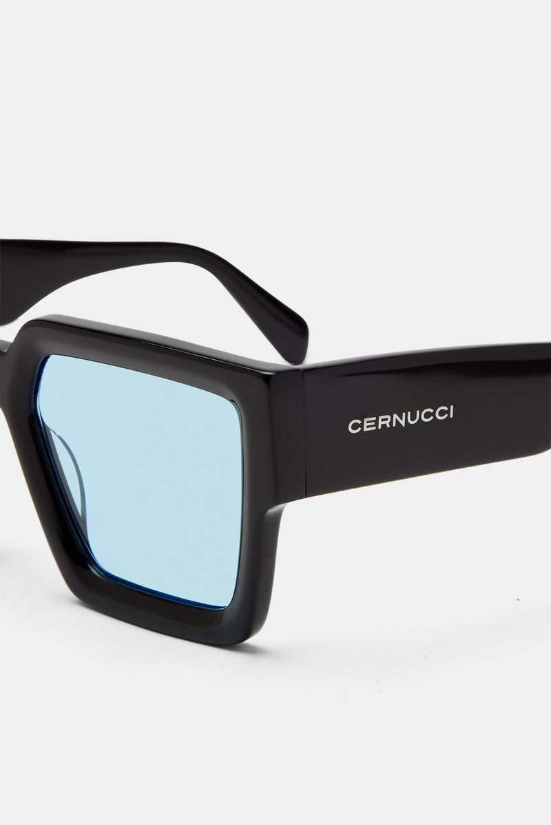 Oversized Thick Frame Acetate Sunglasses in Black.