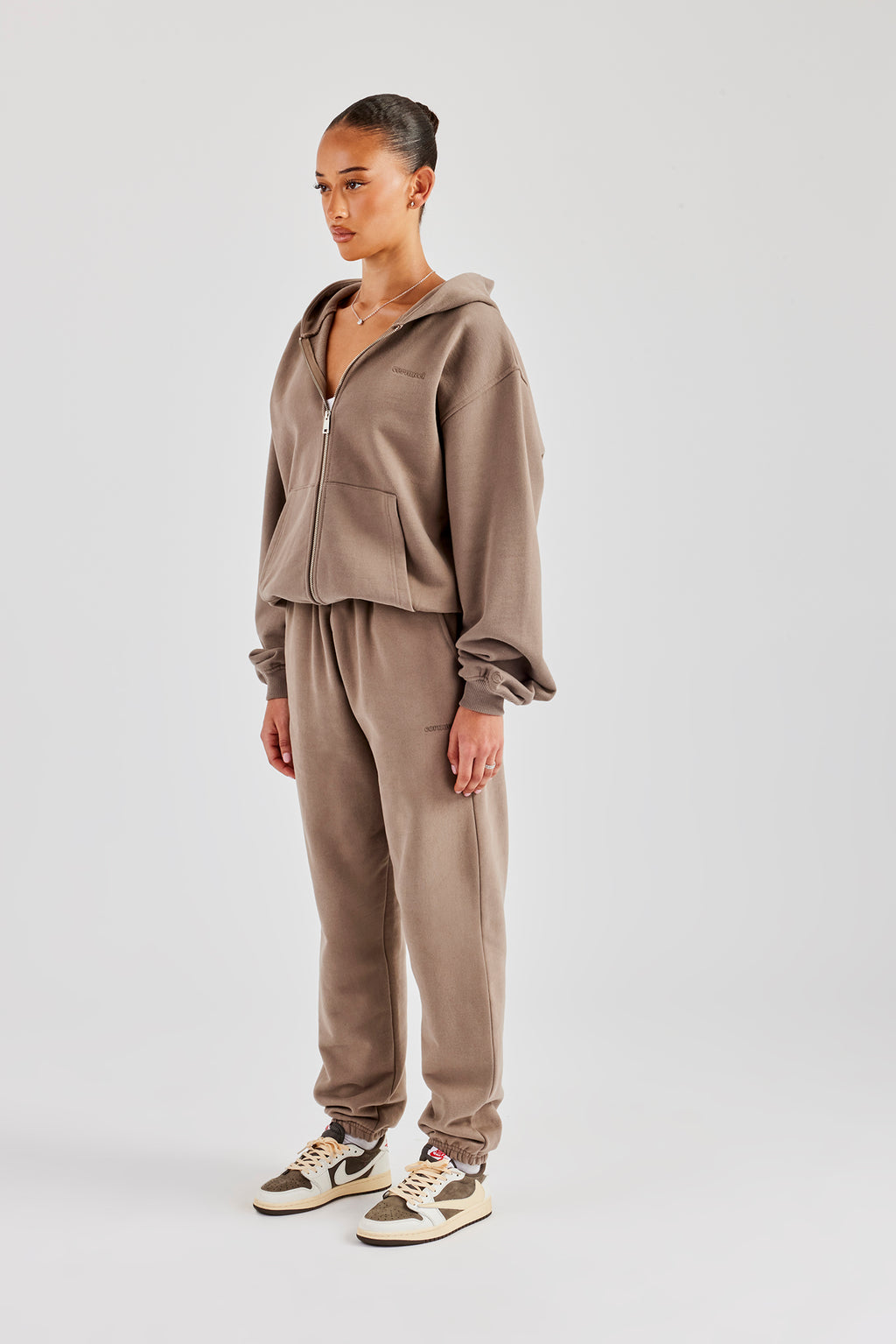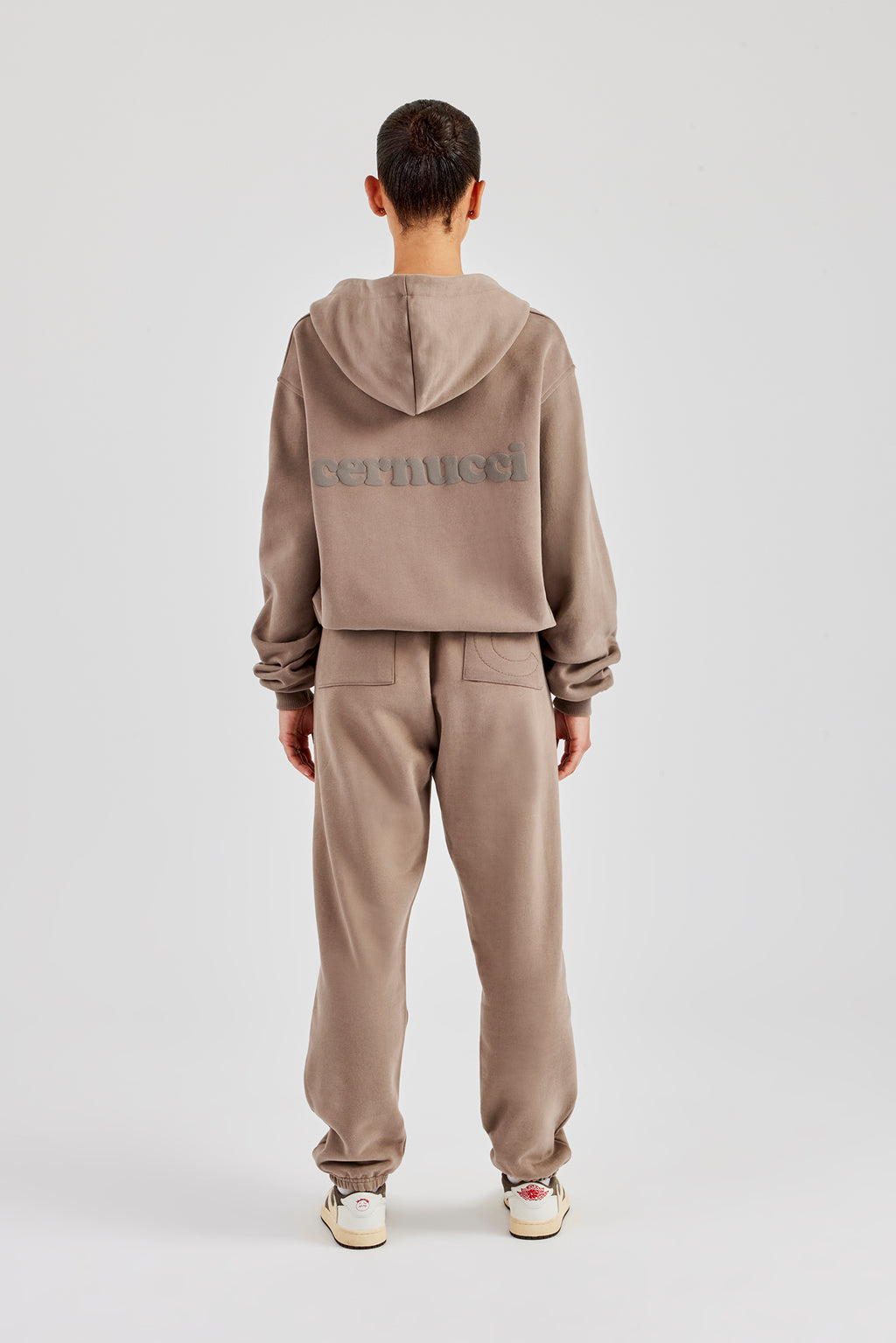 Taupe cuffed Jogger. Premium soft touch jersey with Cernucci branded PU patch on centre back waistband.