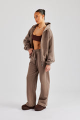 Taupe wide leg jogger. Premium soft touch jersey with Cernucci branded PU patch on centre back waistband.
