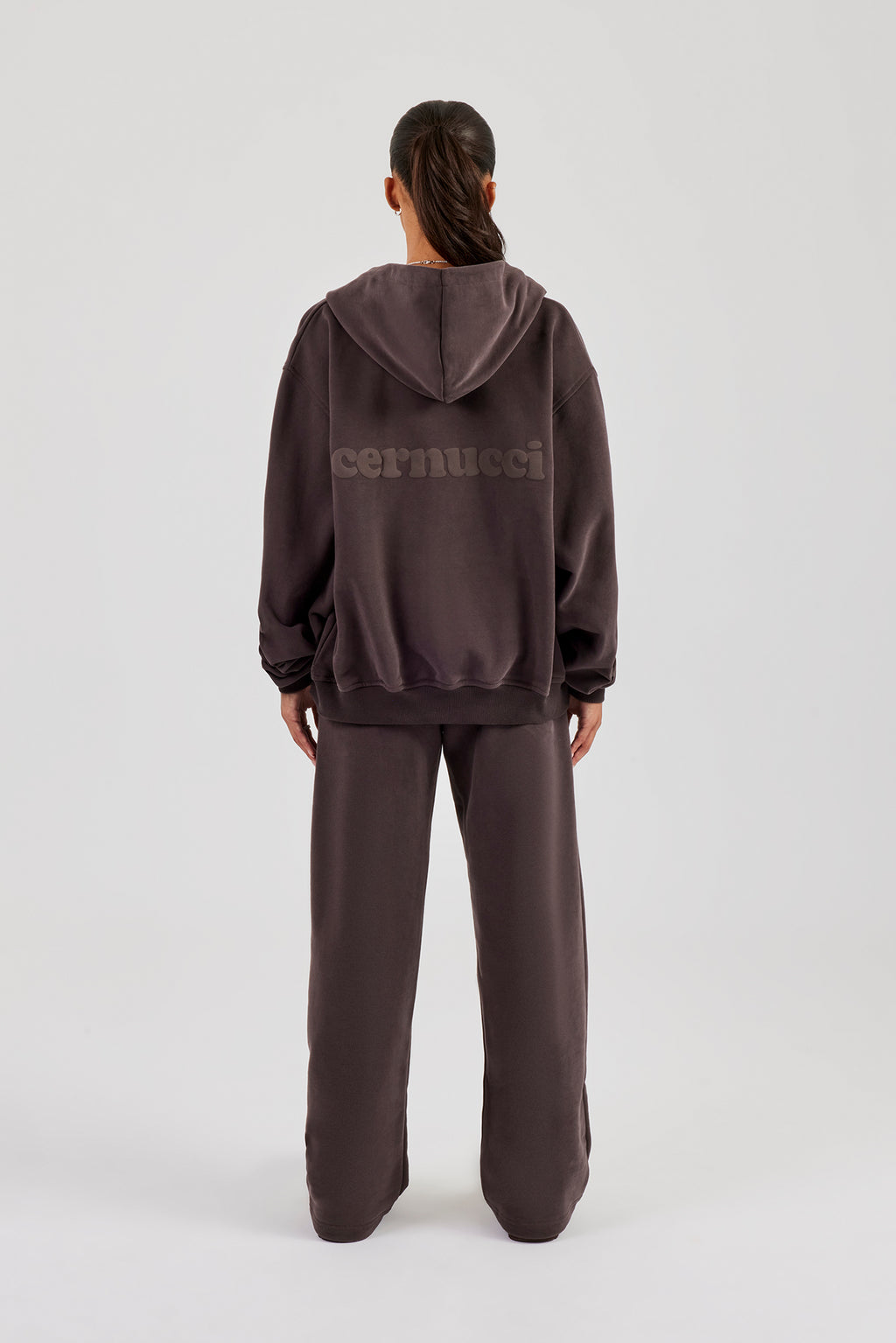 Coffee wide leg jogger. Premium soft touch jersey with Cernucci branded PU patch on centre back waistband.