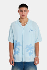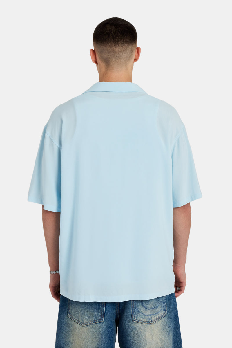Our light blue short sleeve shirt, everyone's summer wardrobe essential, versatile for any occasion. Made from premium, light weight, breathable fabric with printed effect. Complete the look with our denim bermuda shorts.