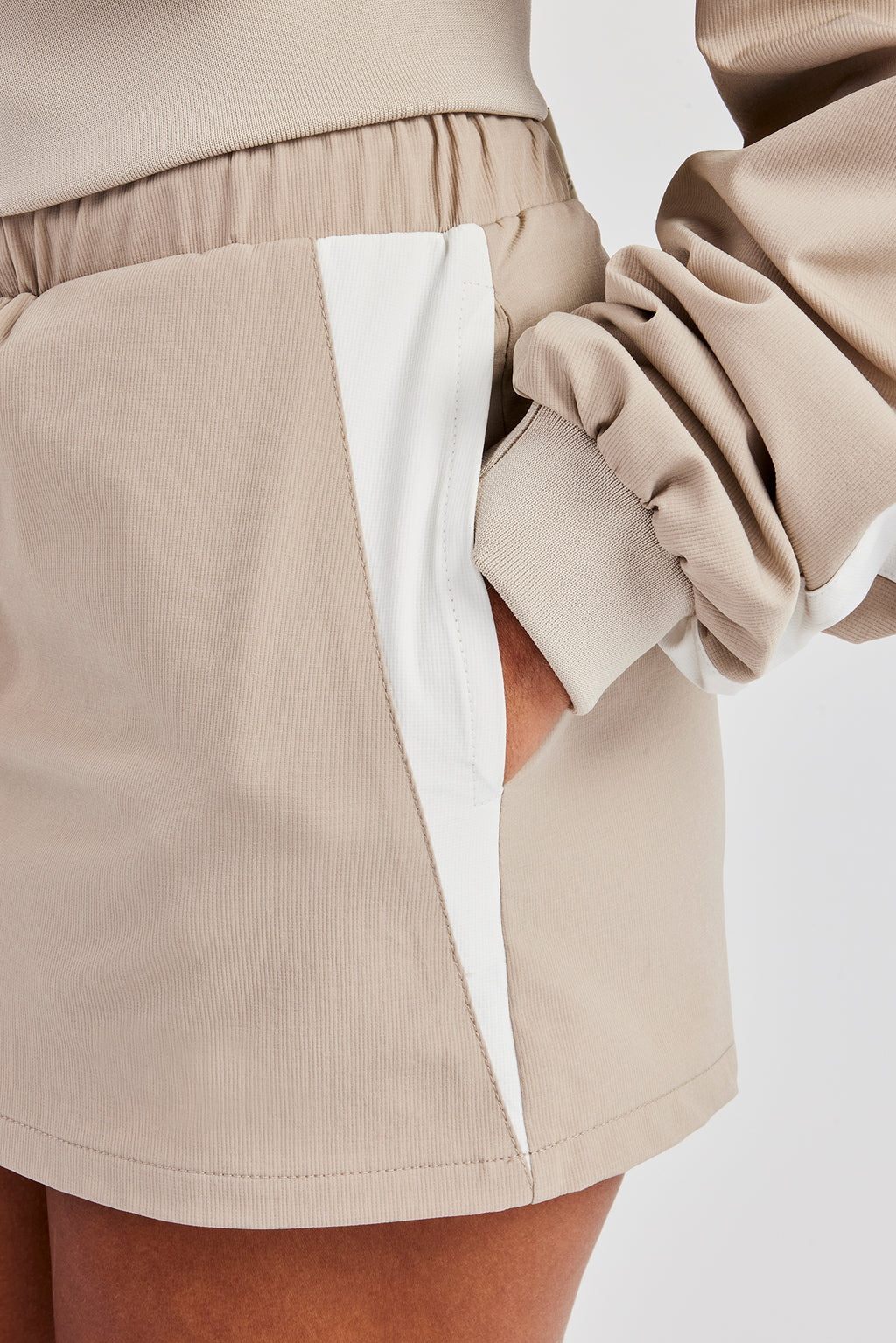 Mini skirt with contrast panelling in a lightweight nylon.