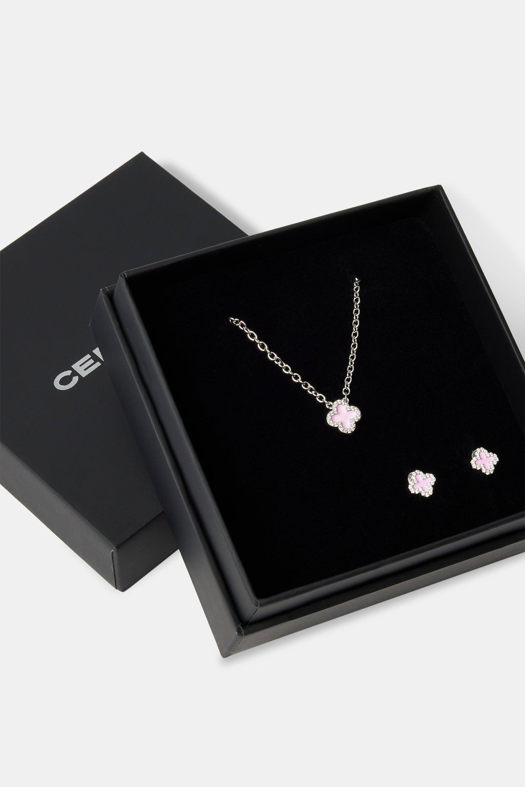 The perfect gift for the statement jewellery lover. Featuring our Pink Motif Motif necklace in 18" length and matching earrings. This gift is sure to standout.