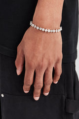 This bracelet blends smooth polished beads with subtle iced detailing, giving you a balanced look that hits different—easy to style, hard to miss.
