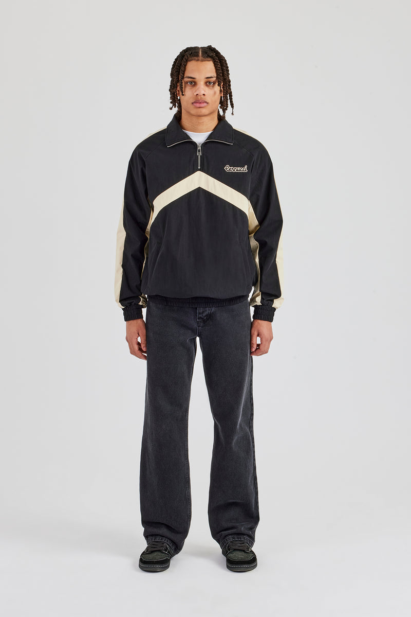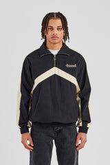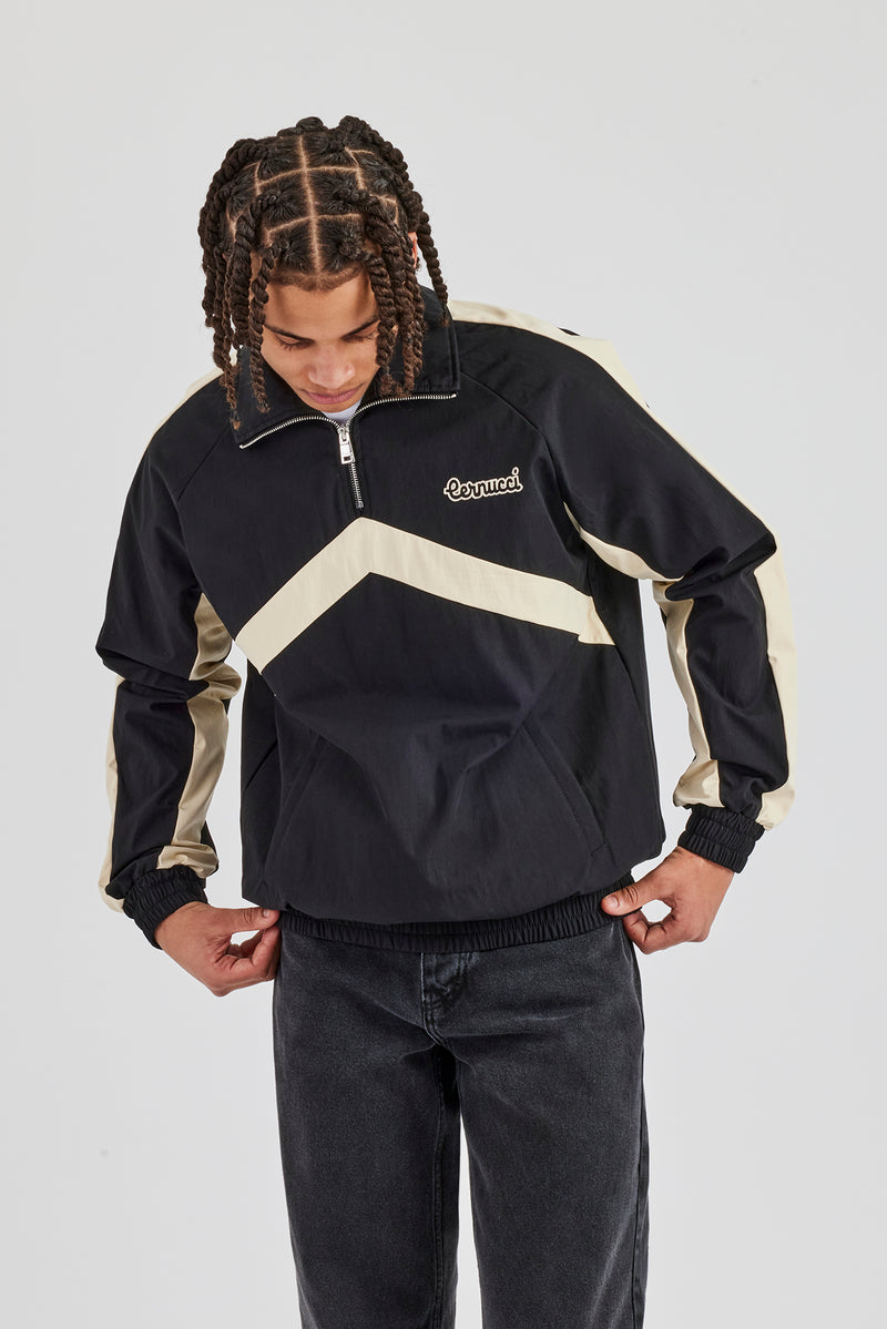 Quarter zip nylon jacket with contrast stripe detailing in a lightweight nylon.