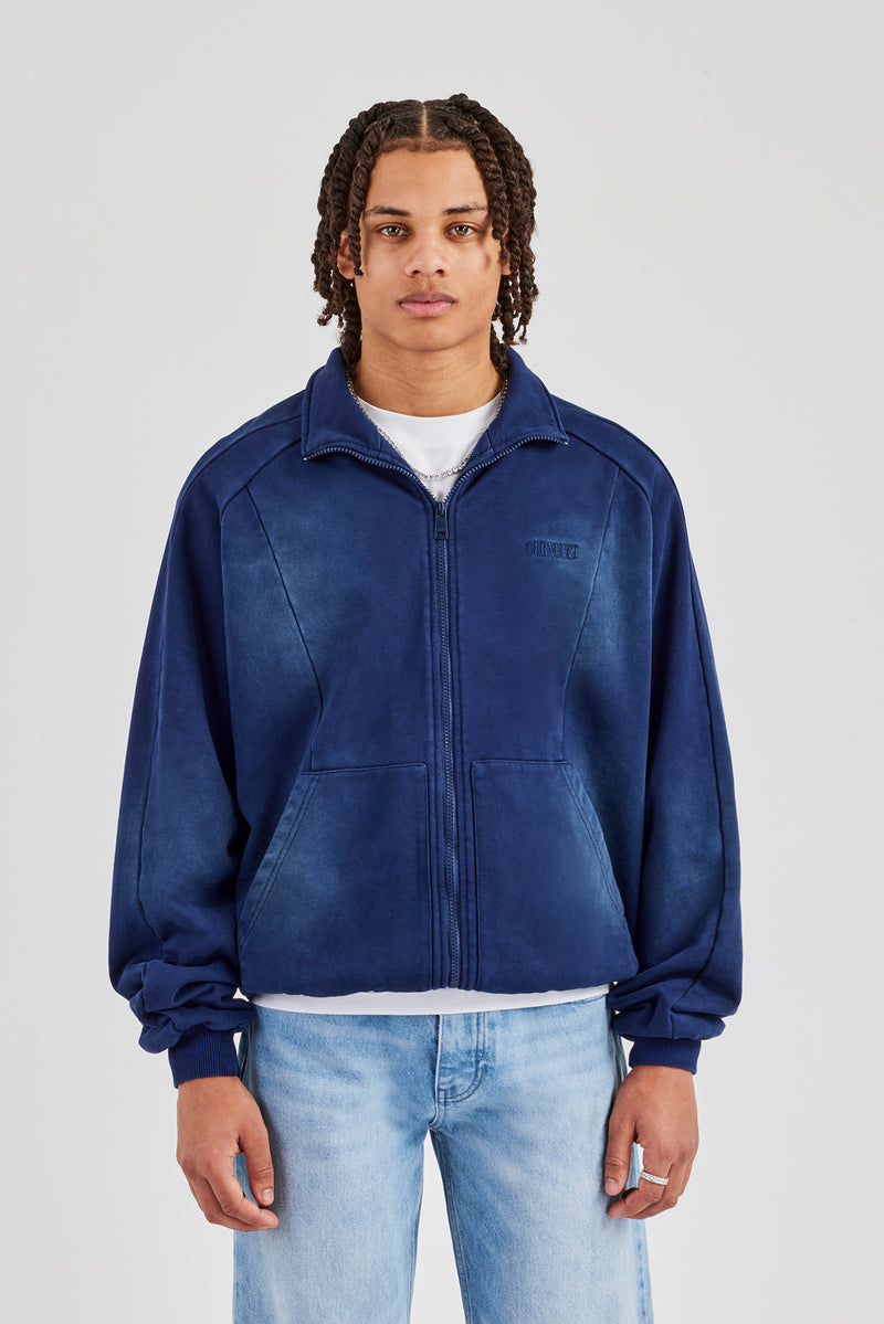 Navy blue washed zip through hoodie featuring seam detailing. Premium heavyweight soft touch jersey. Pair with the matching washed jogger for the full look.