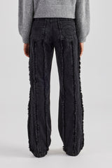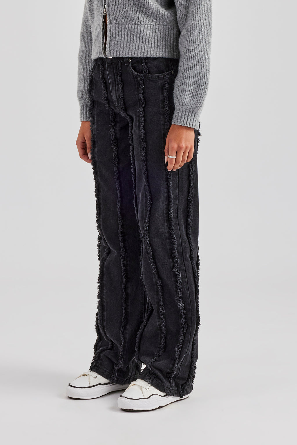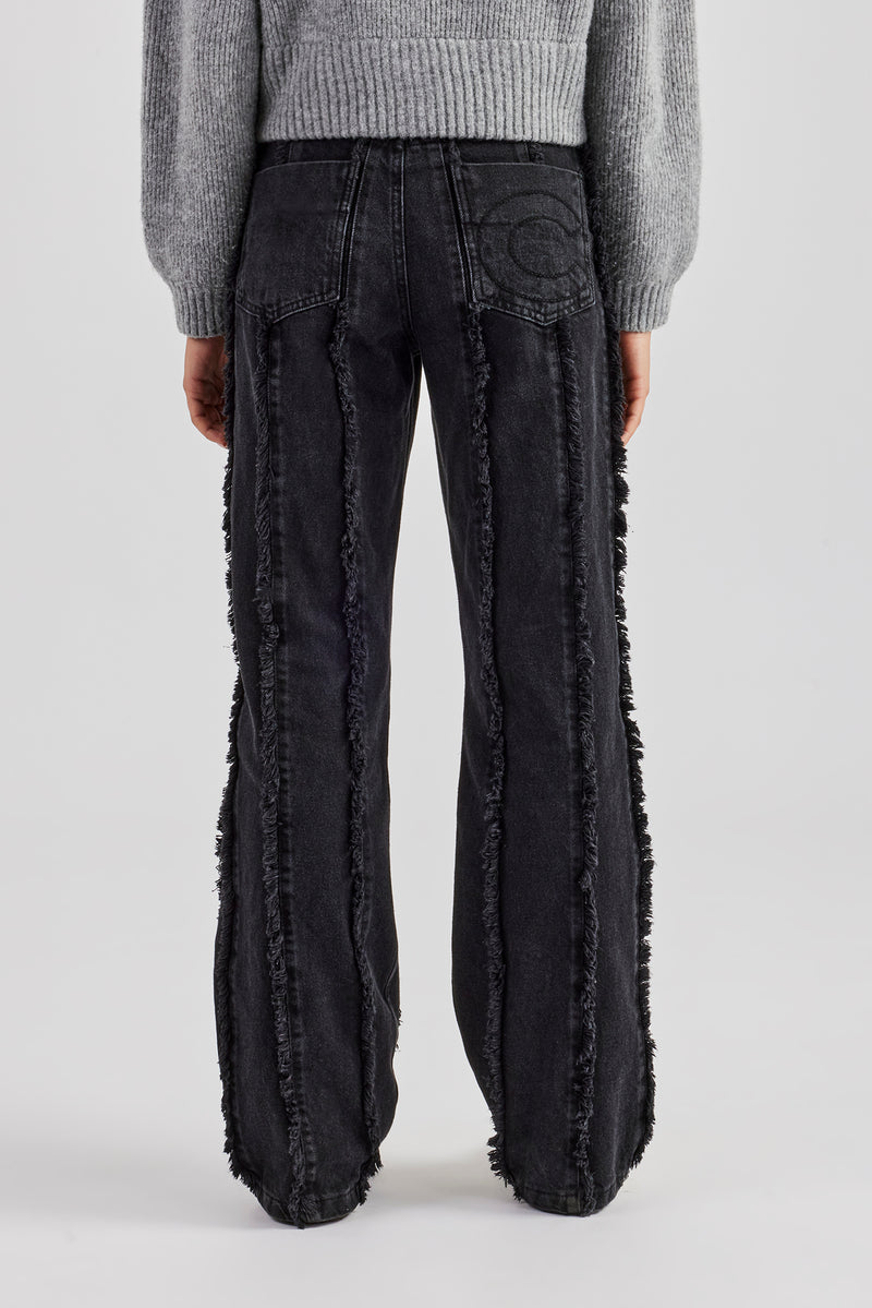 Washed black raw edge seam detail relaxed jeans, made from mid weight premium denim. Pair with our matching raw edge cropped jacket for the full look.