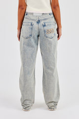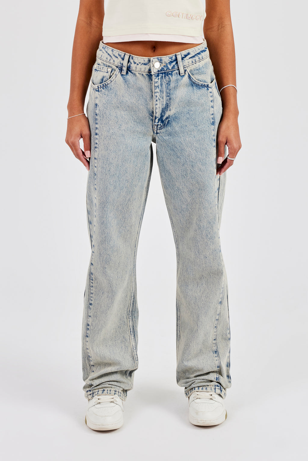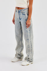 Antique washed jeans, in rigid cotton denim. Relaxed fit finished with seam detailing.