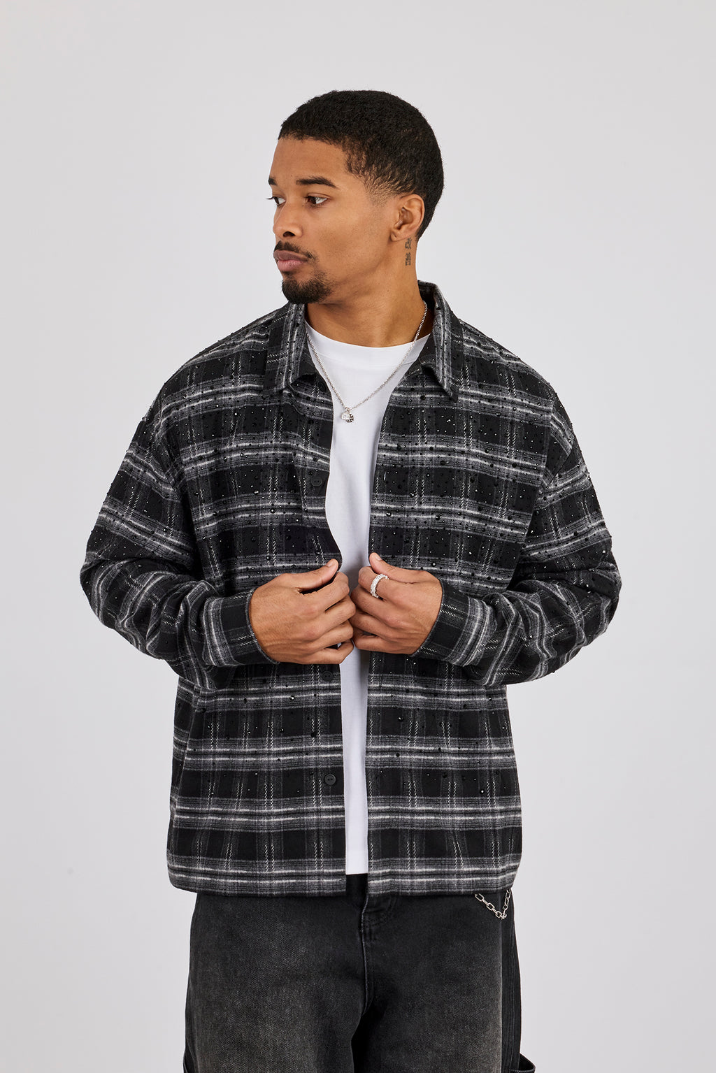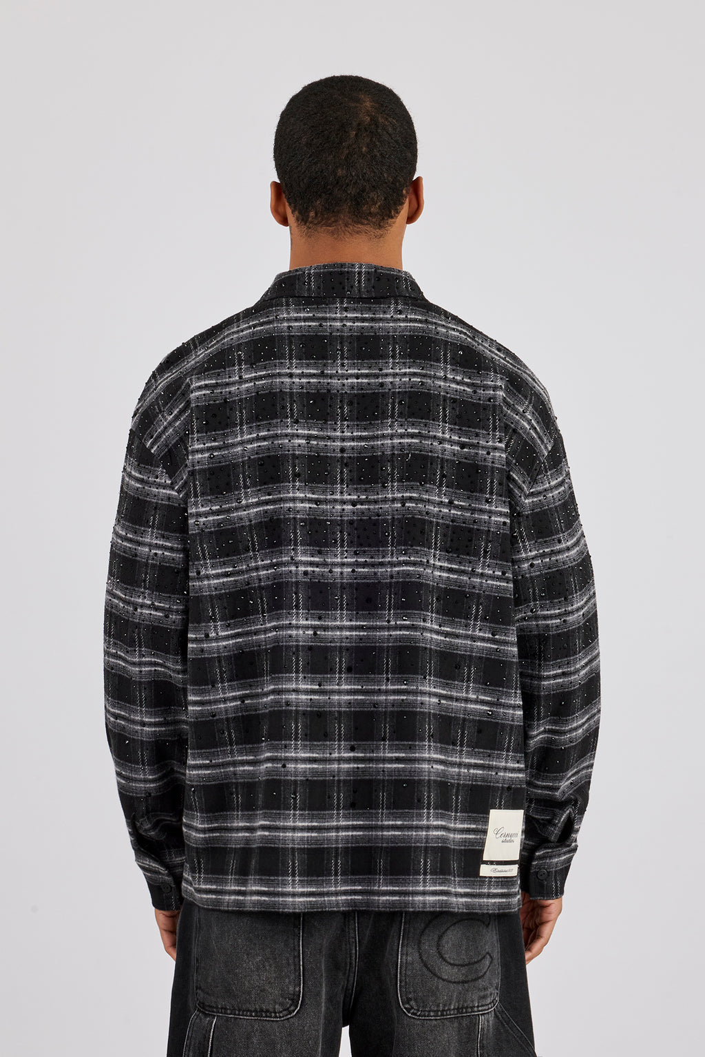 Our black check shirt with rhinestone crystal detailing. made from medium weight, soft touch cotton.