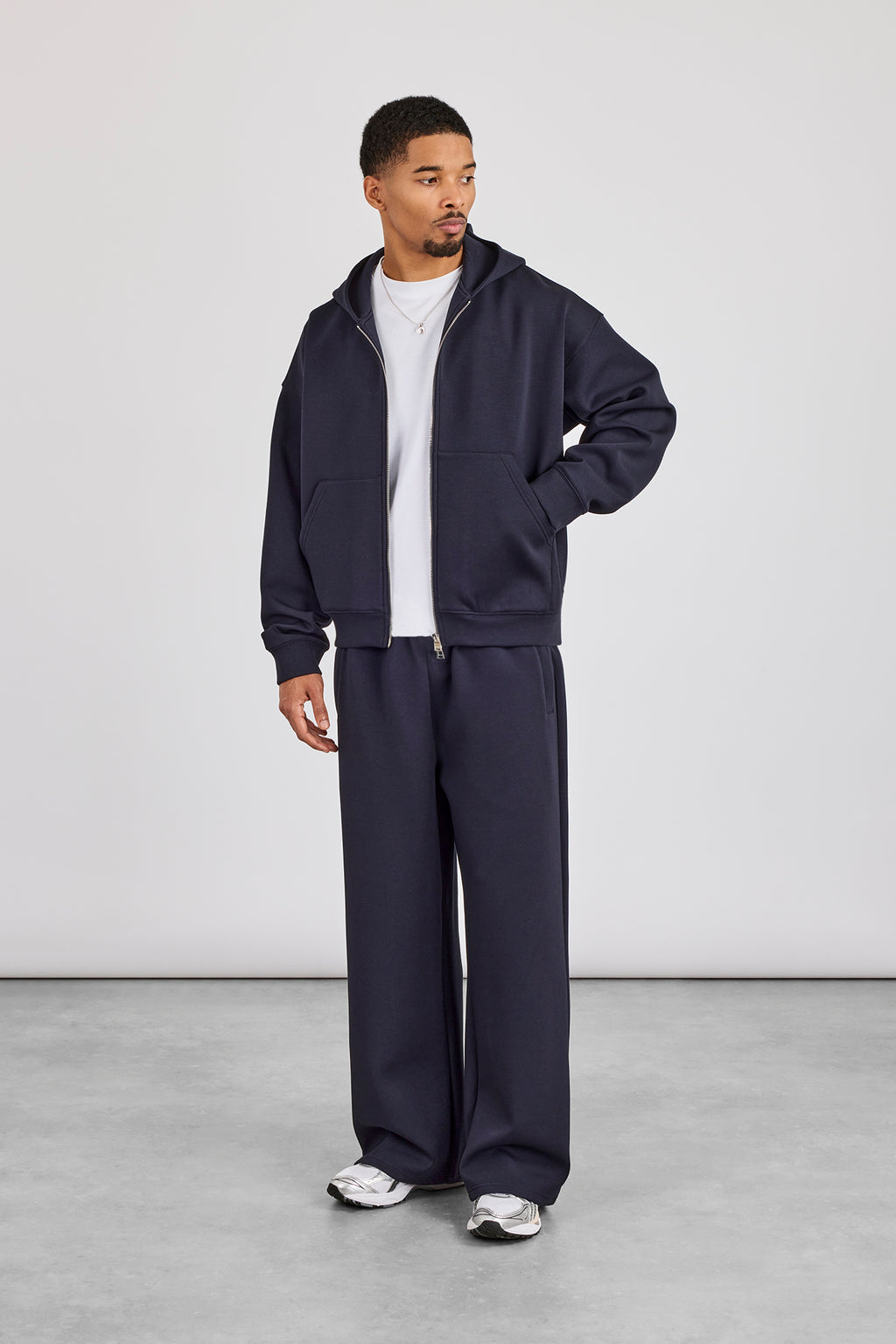 Navy zip through scuba hoodie, made from soft touch premium scuba featuring. Pair with our matching trouser to complete the look.