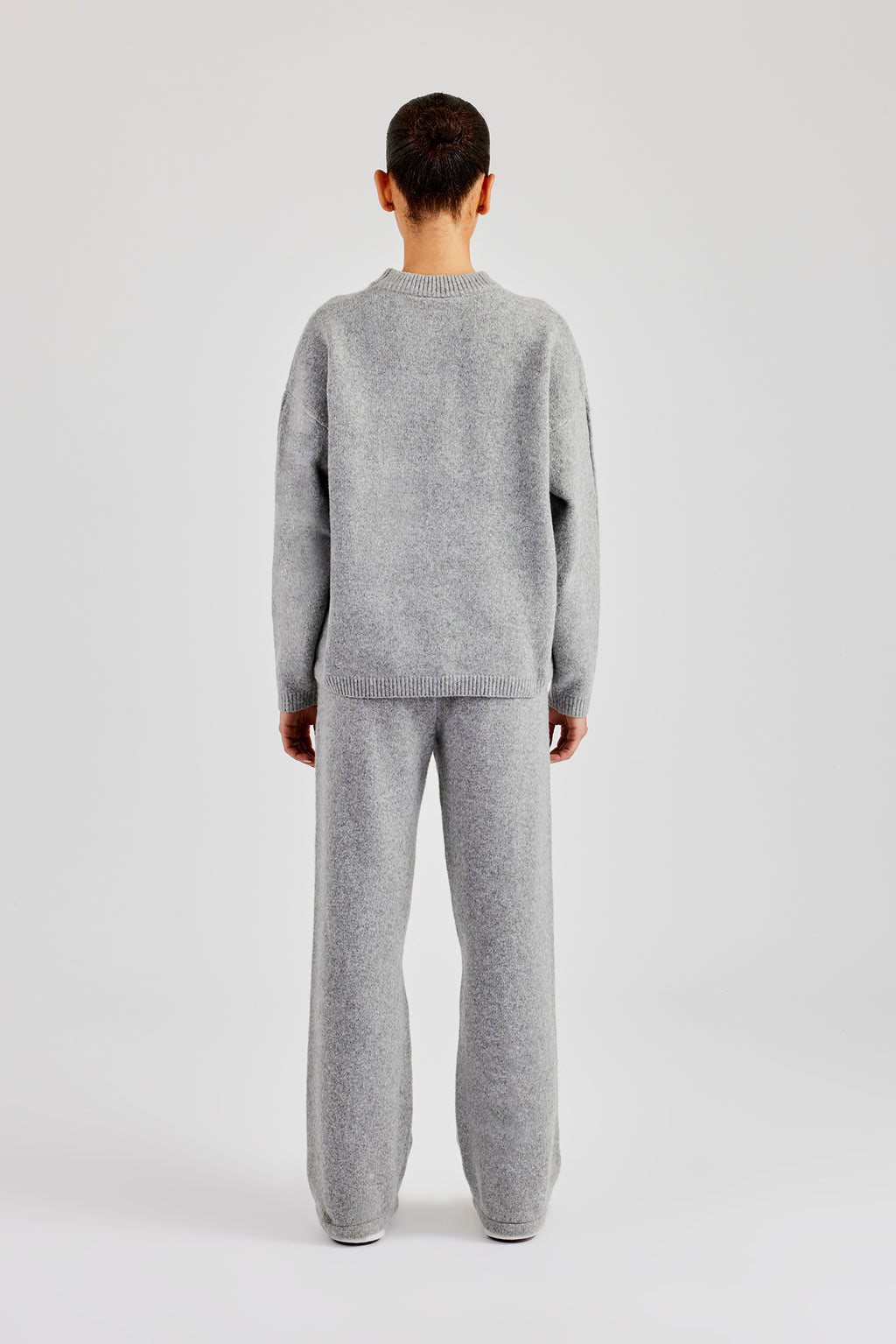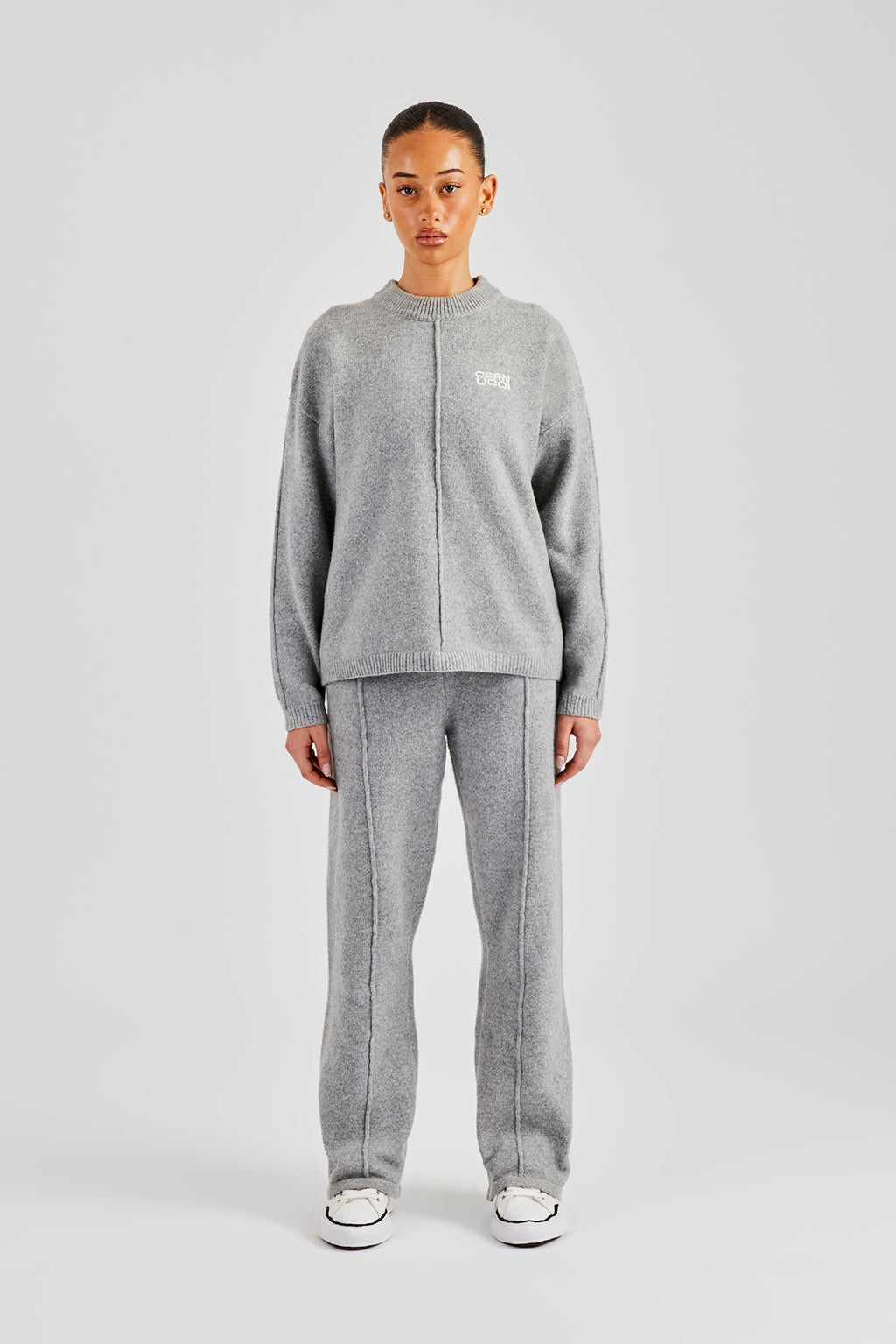 Grey knitted wide leg jogger in a soft touch knit with front seam detail.