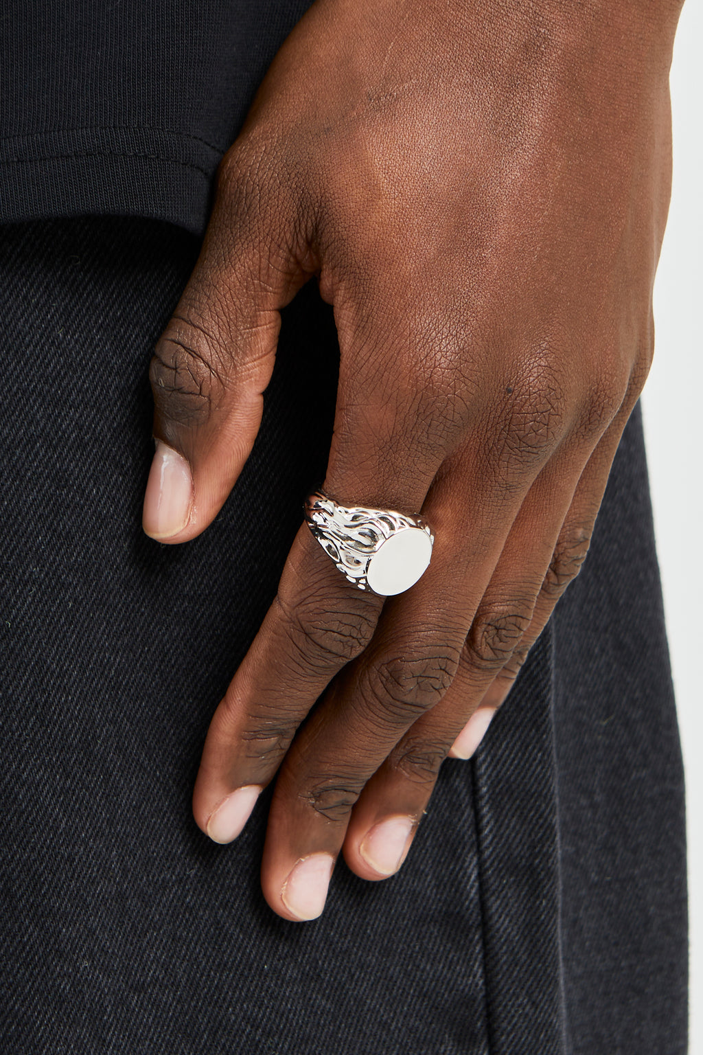 Looking to make a statement? Add our Signet Ring With Textured Band to your collection. To be worn for any occasion.