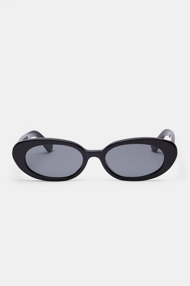 Slim Oval Acetate Sunglasses in Black.