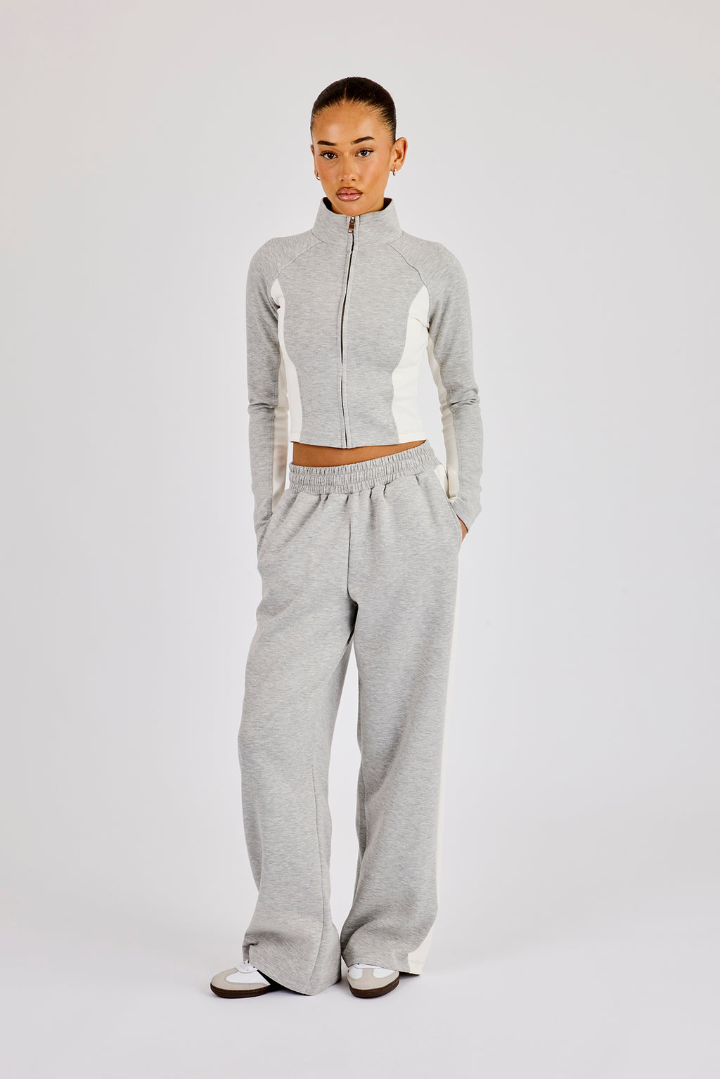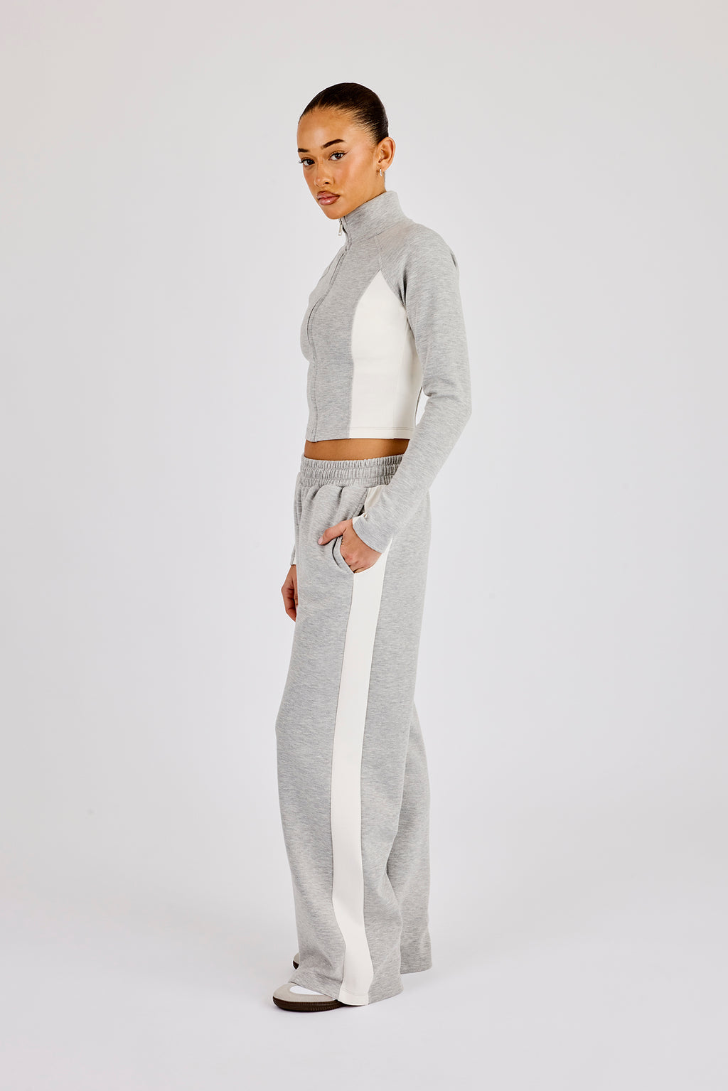 - Branded PU patch at centre back waistband