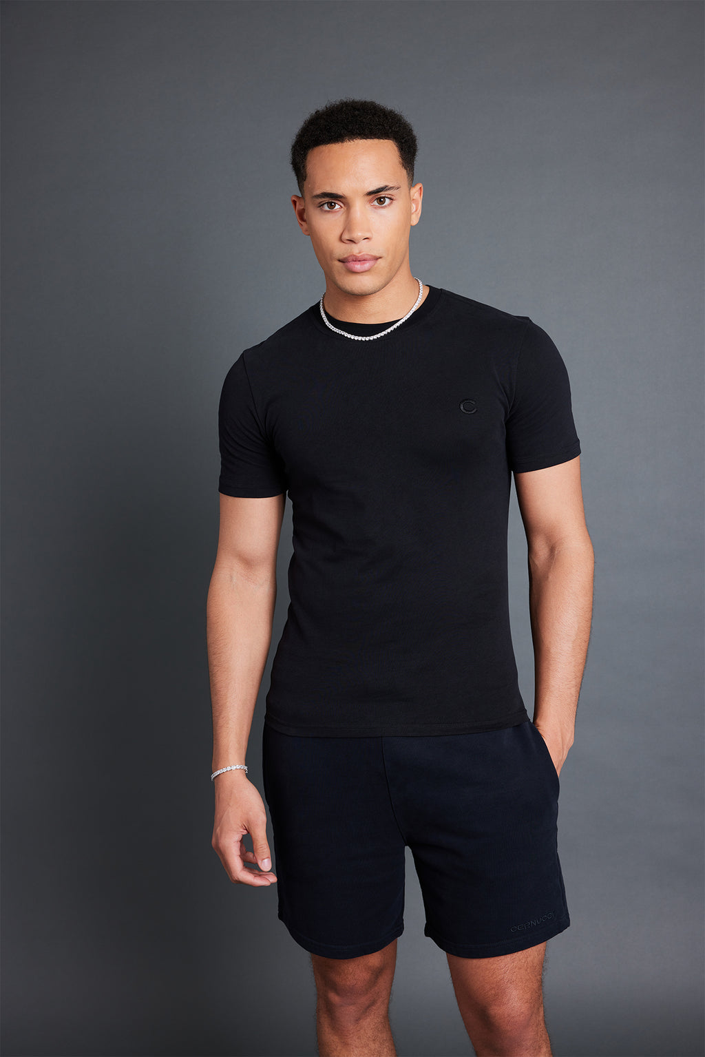 - C embroidery on chest
