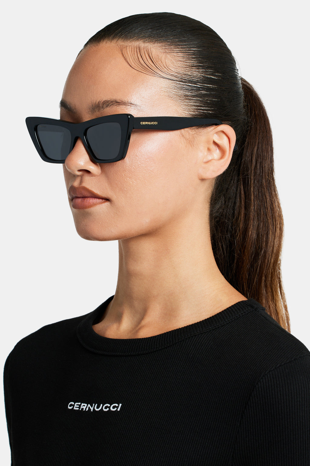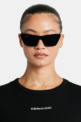 Square Cat Eye Acetate Frame Sunglasses in Black.