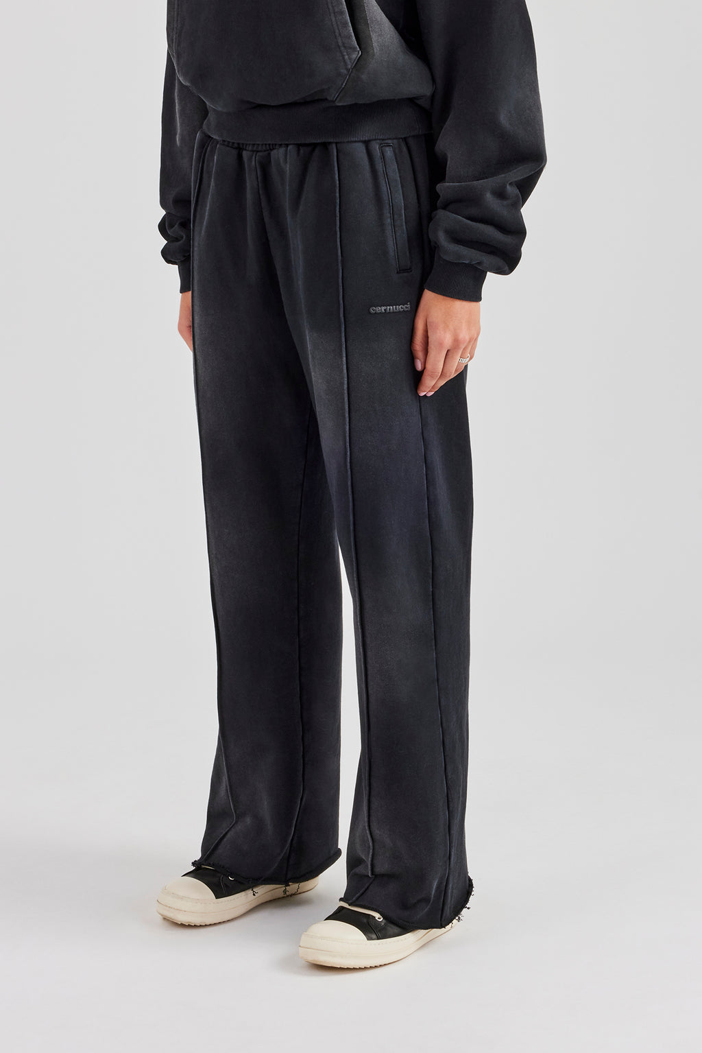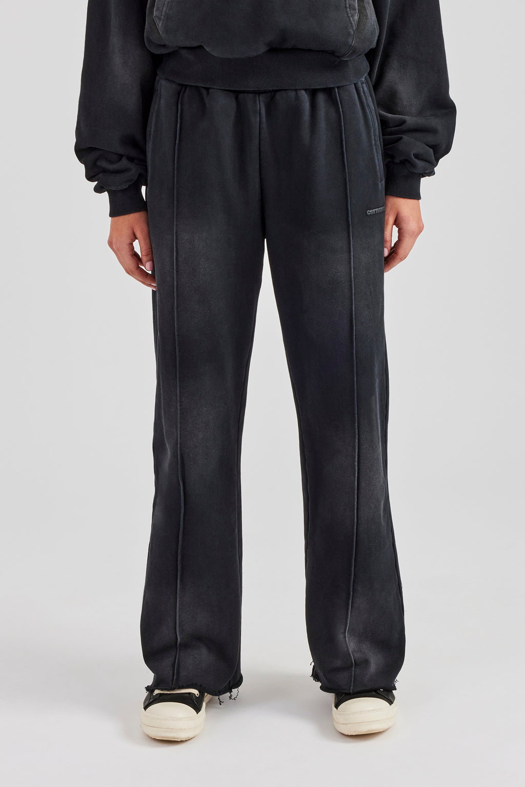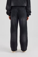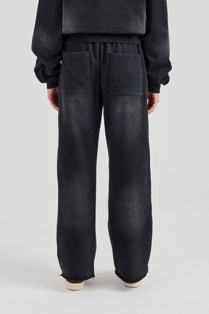 Washed black straight leg jogger with tonal embroidery in a medium weight, soft touch cotton.