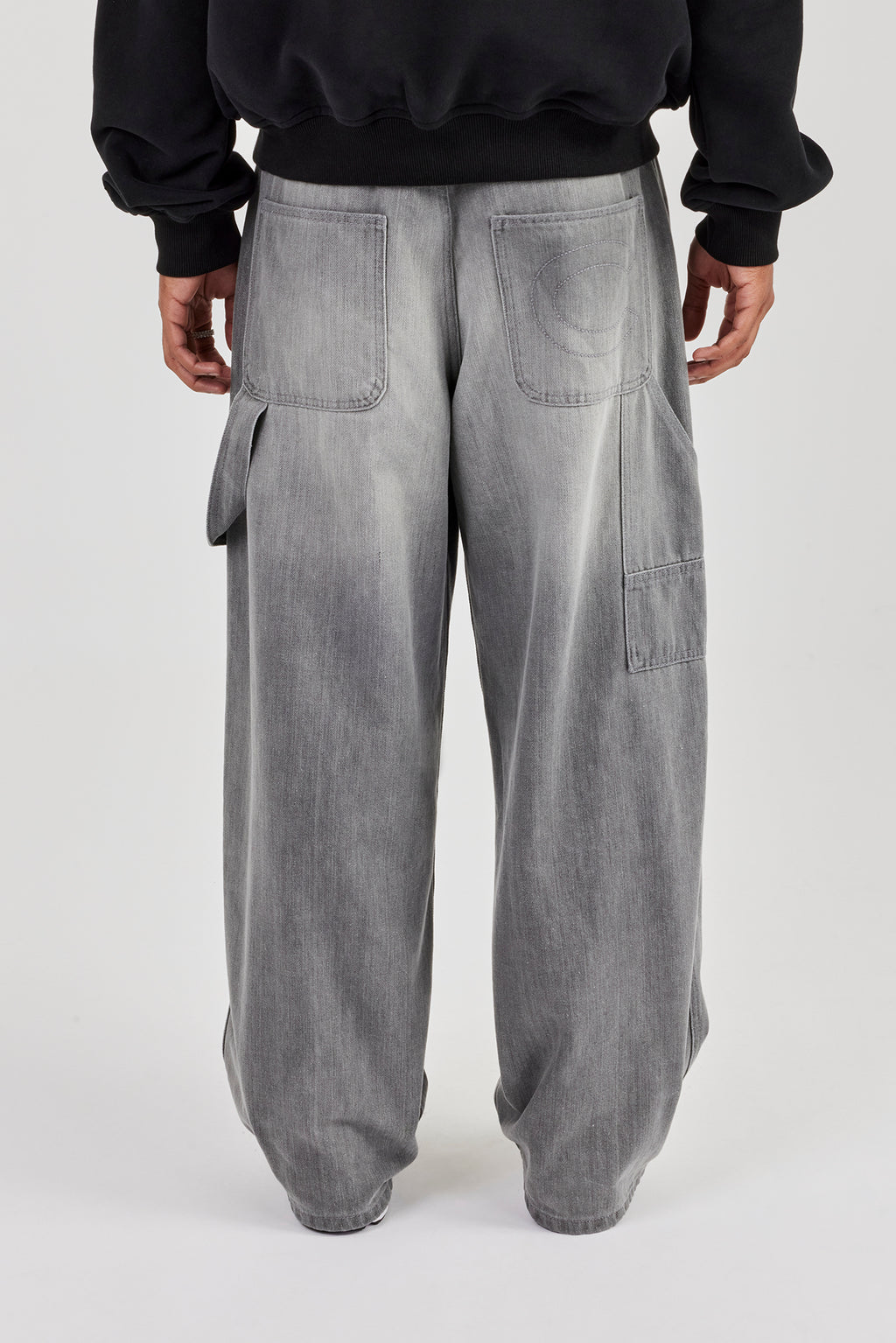 Washed grey jeans, in rigid cotton denim. Super baggy fit finished with carpenter detail.
