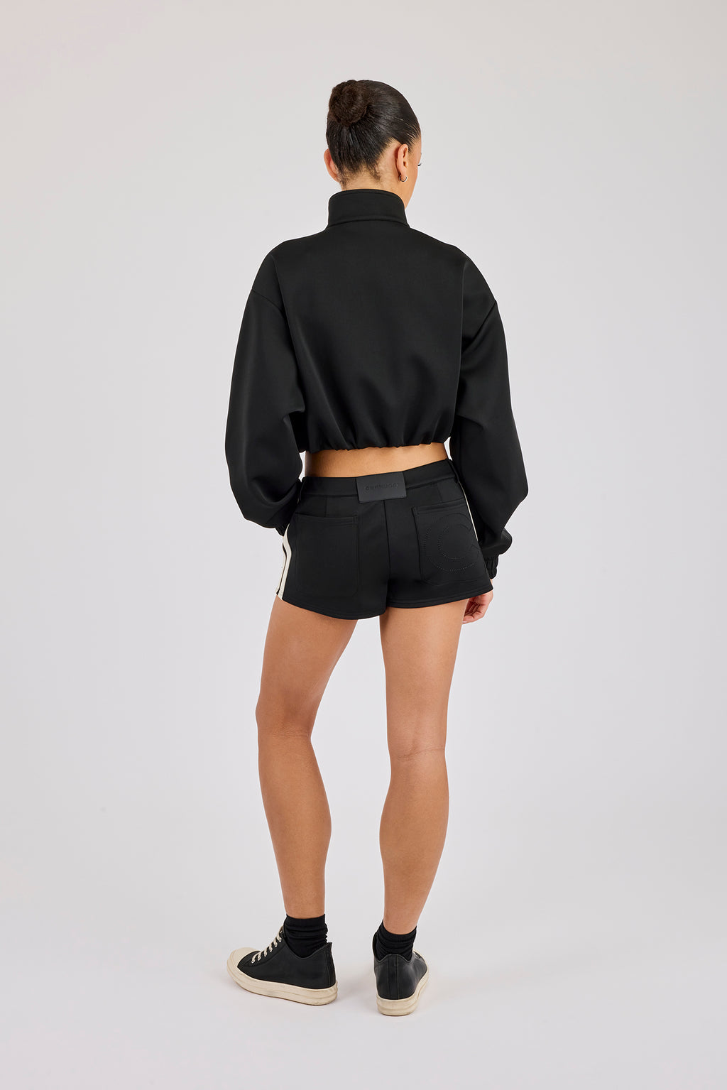 - PU branded patch at back of waistband