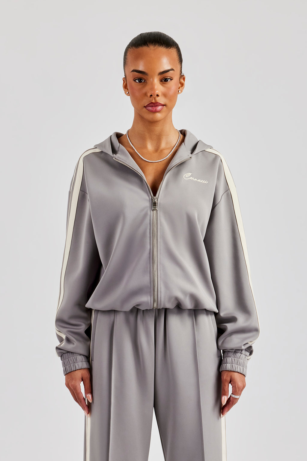 - Zip through hooded jacket