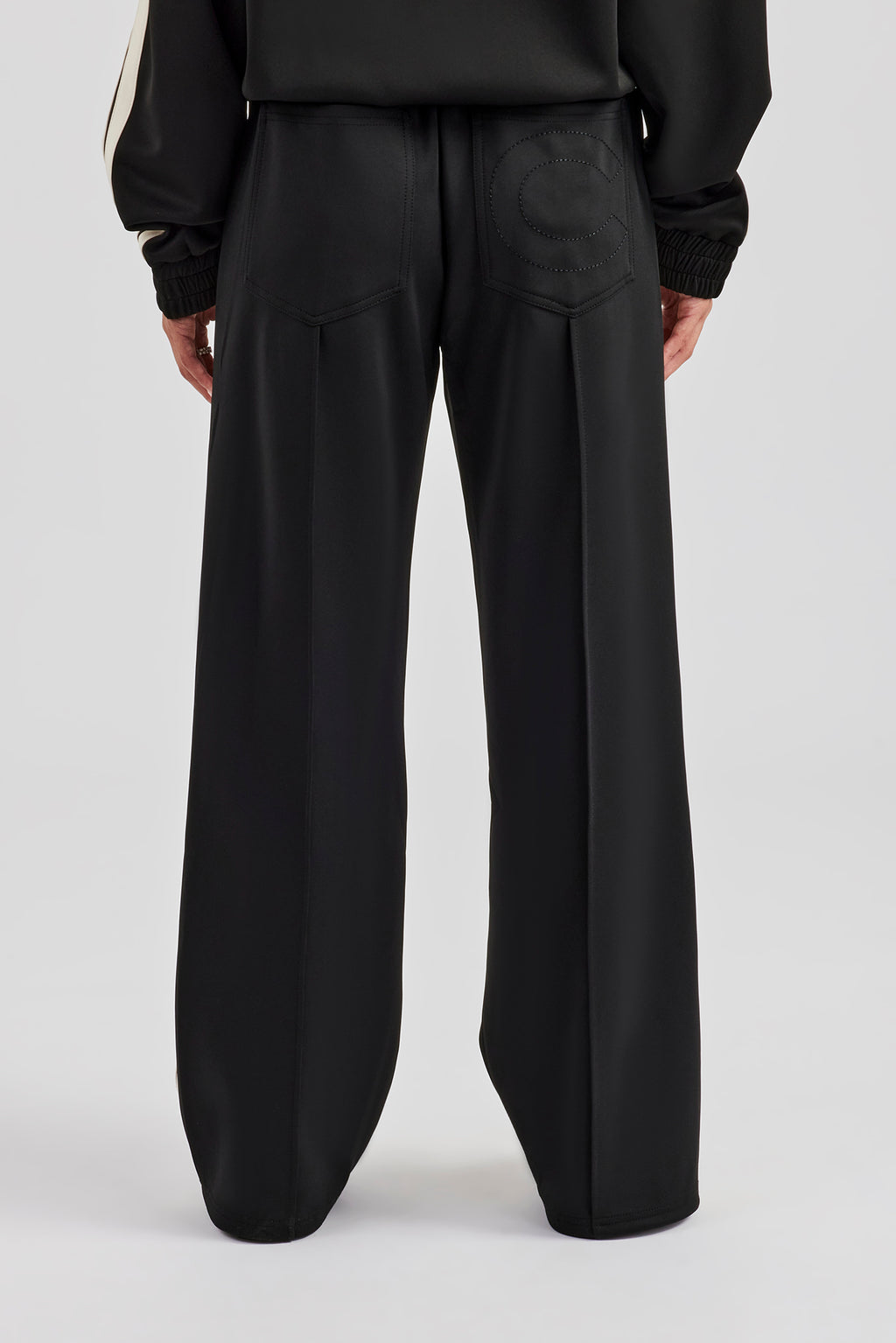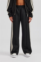 Black taping straight leg track pant with elasticated waistband jogging trouser in a soft scuba with contrast panel and tonal branding.