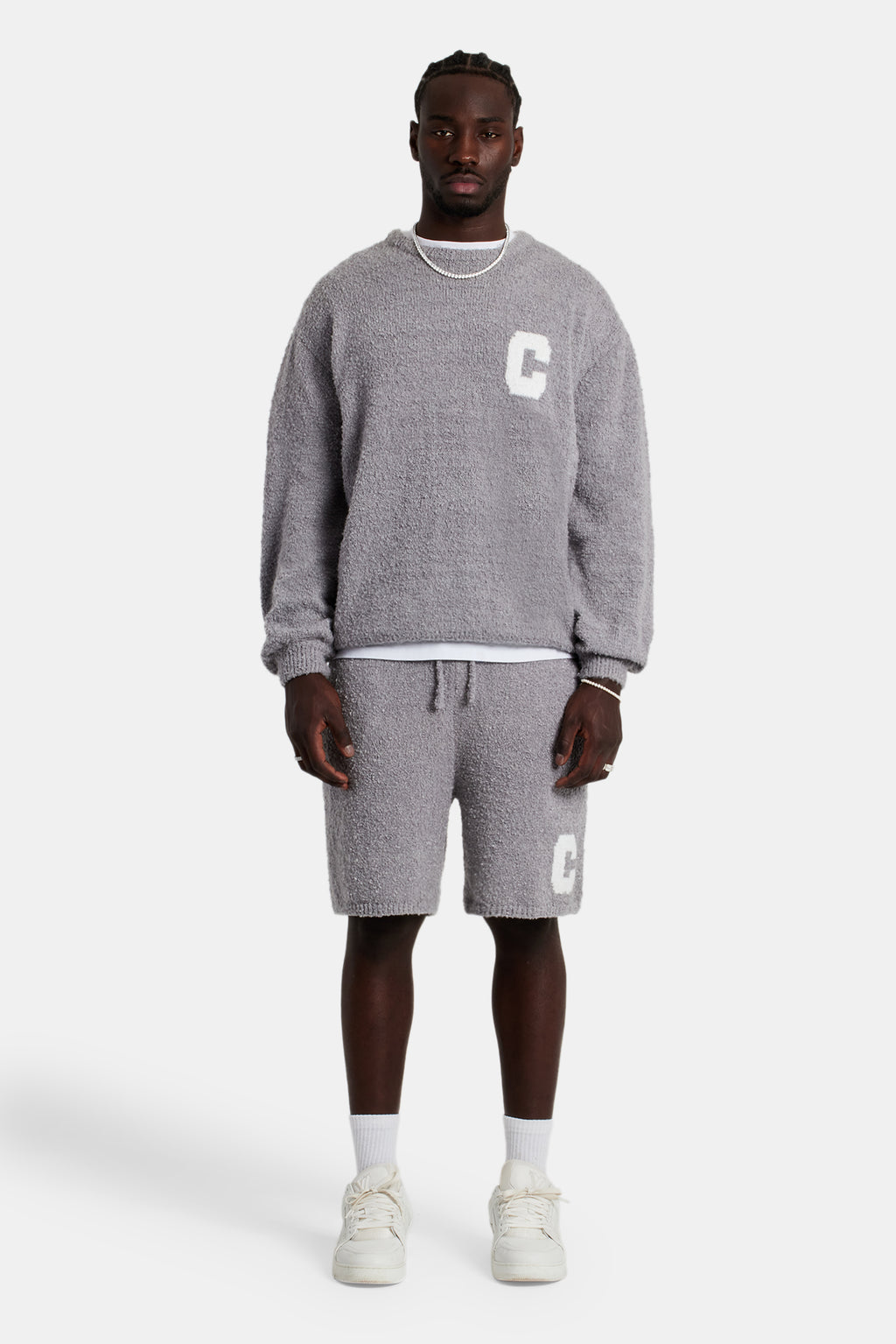 Relaxed sweatshirt in a soft touch textured knit featuring jacquard logo C.