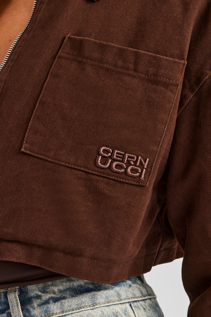 Chocolate twill jacket with Cernucci branded high build embroidery.