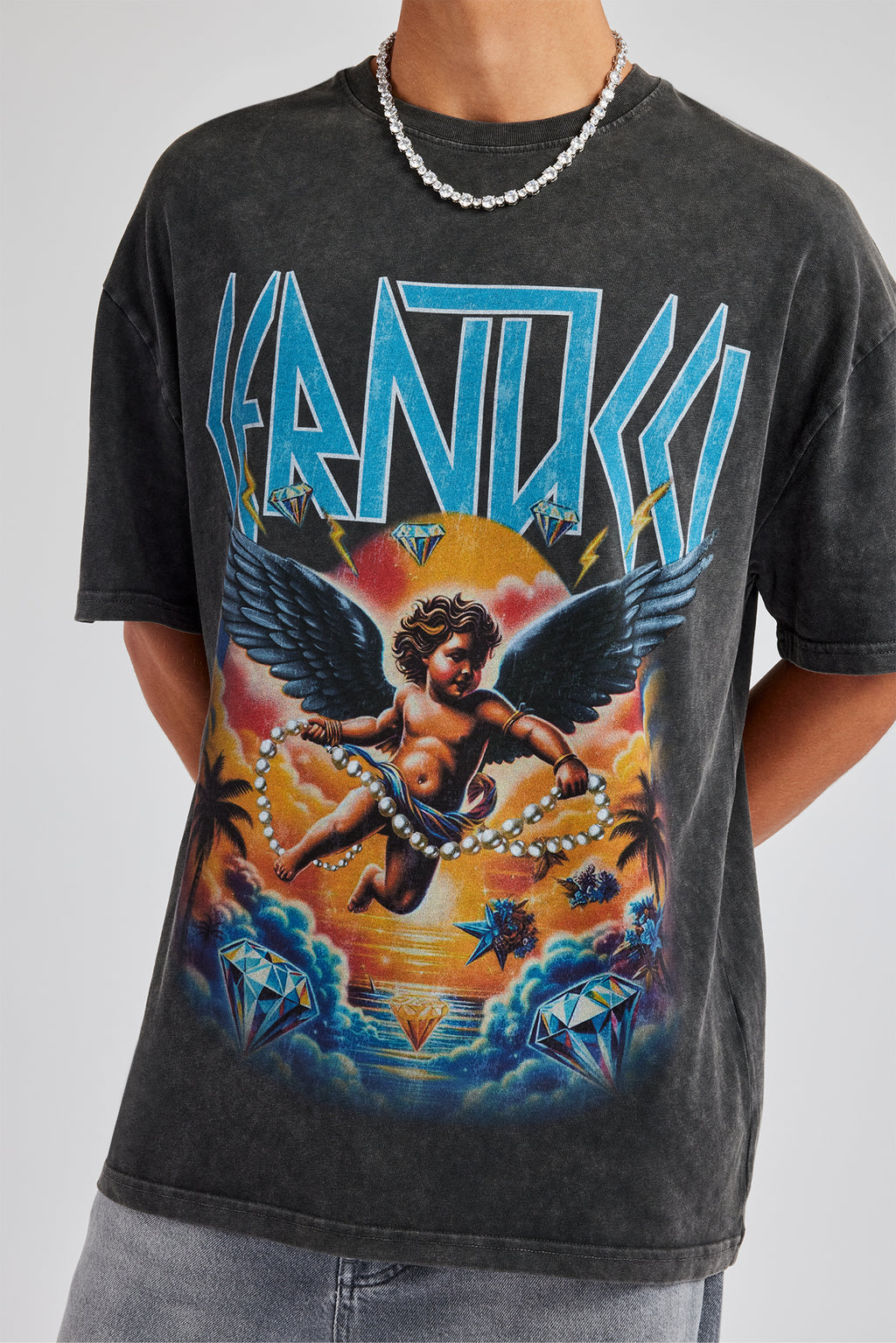 Vintage wash pearl cherub t-shirt. Boxy fit in a medium weight, soft touch cotton.