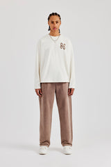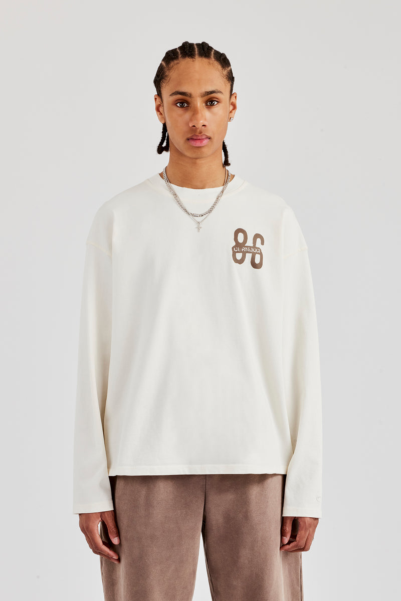 Off White long sleeve t-shirt featuring front & back print. Boxy oversized fit in a medium weight, soft touch cotton.