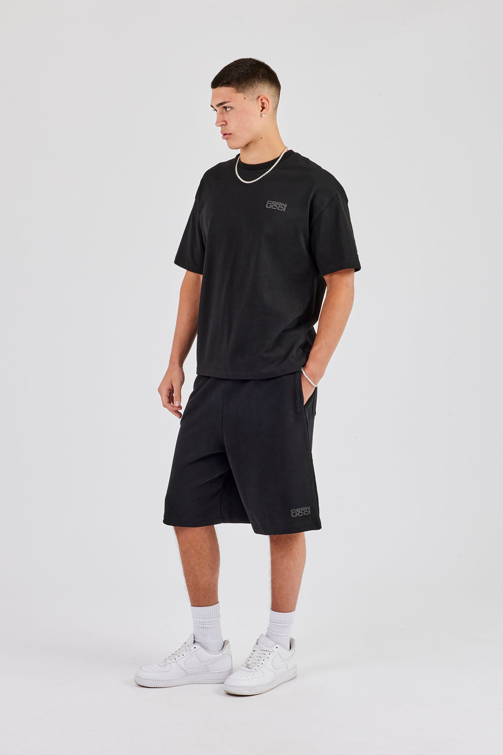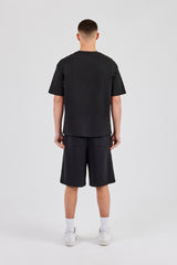 Black washed jersey jort in a medium weight, soft touch cotton, pair with our matching t shirt to complete the look