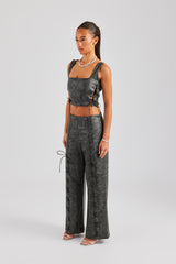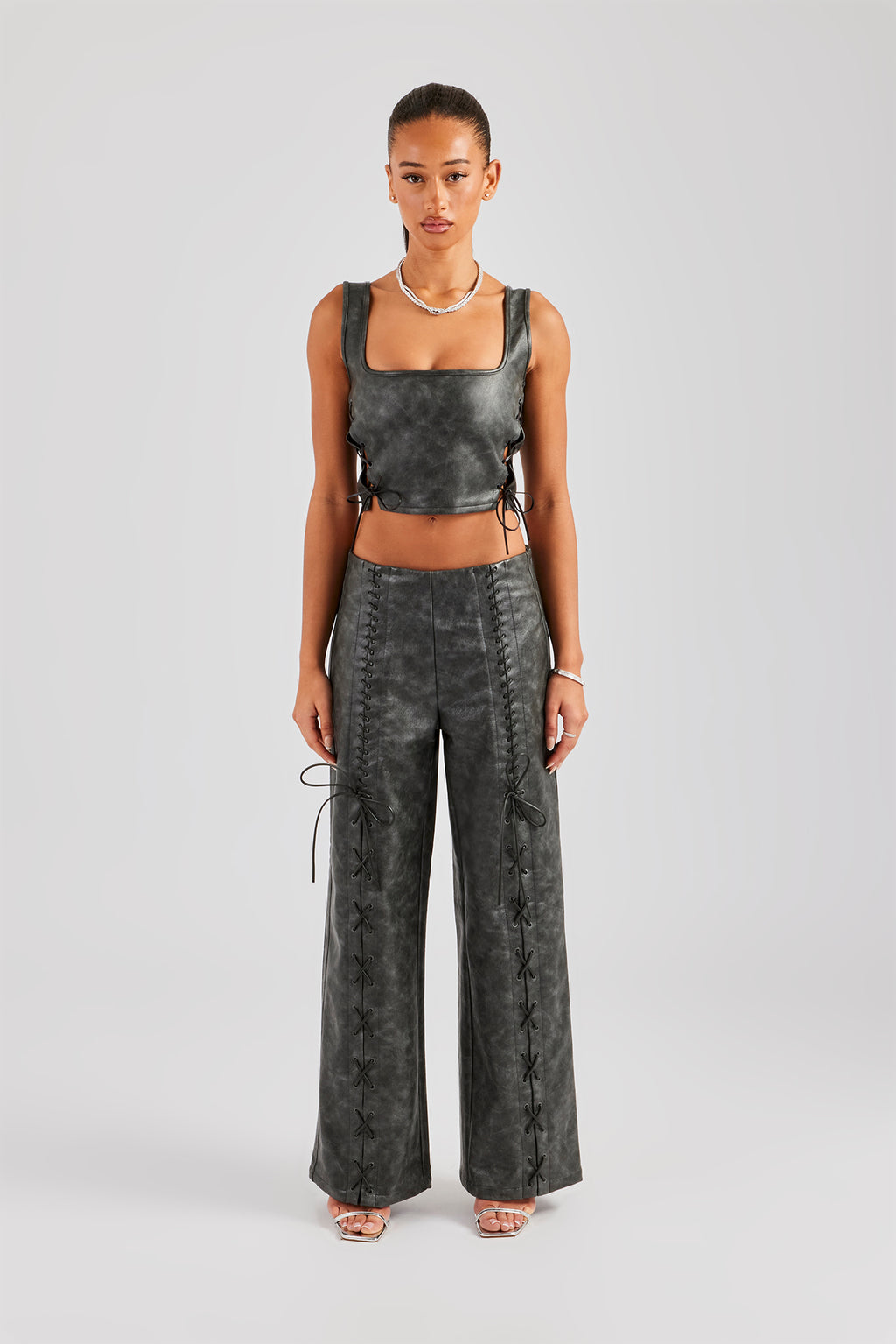 Washed charcoal low waist PU trousers, featuring lace up details. Pair with our matching washed PU Jacket and lace up top for the full look.
