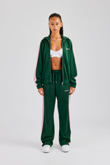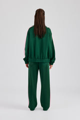 Green straight leg track pant in a soft scuba with contrast logo embroidery.