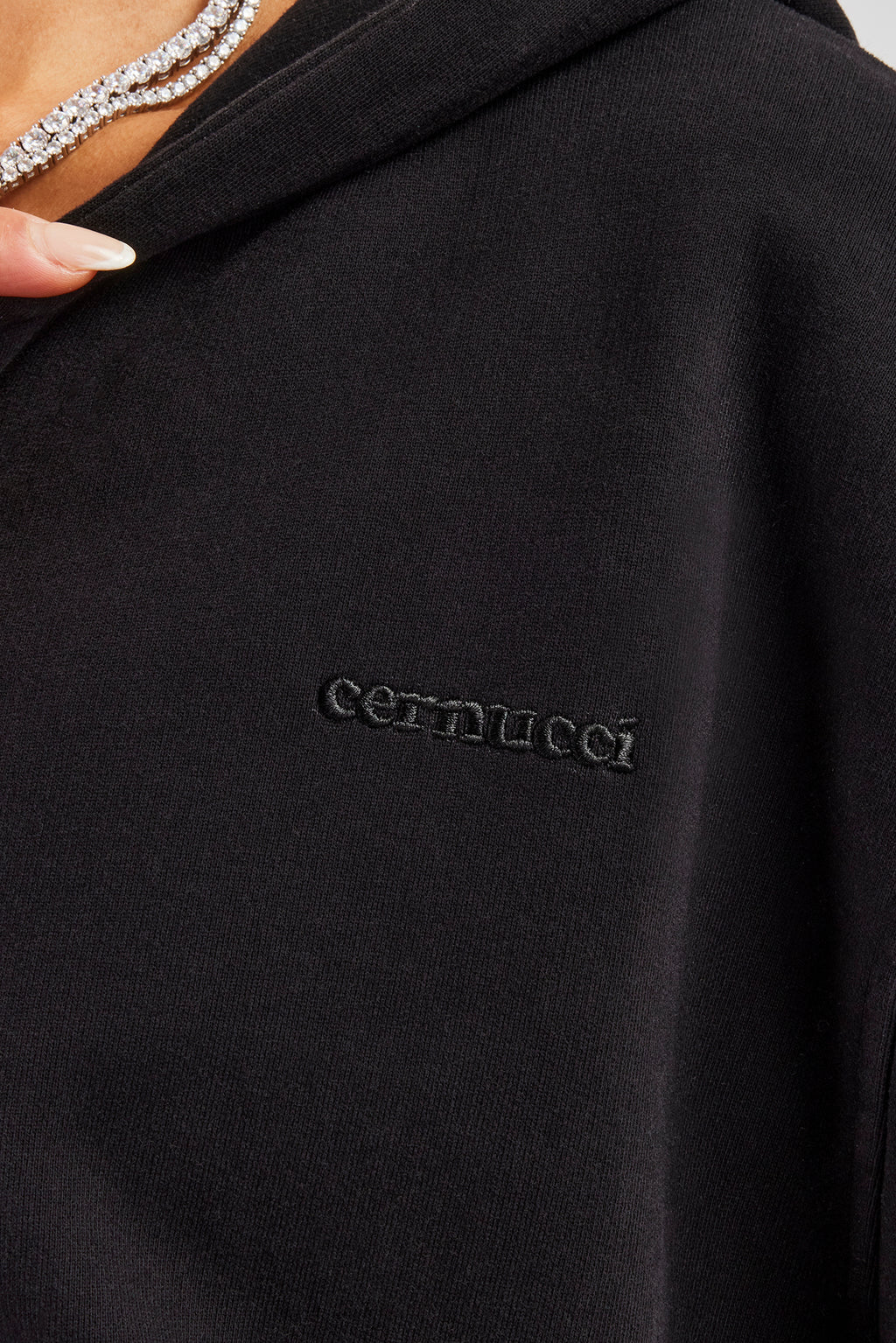 Black Wide Leg Jogger. Premium heavyweight soft touch jersey with tonal rubber tab on back pocket.